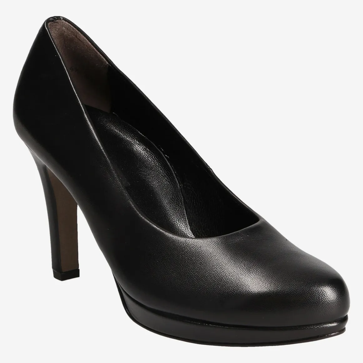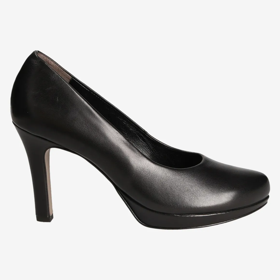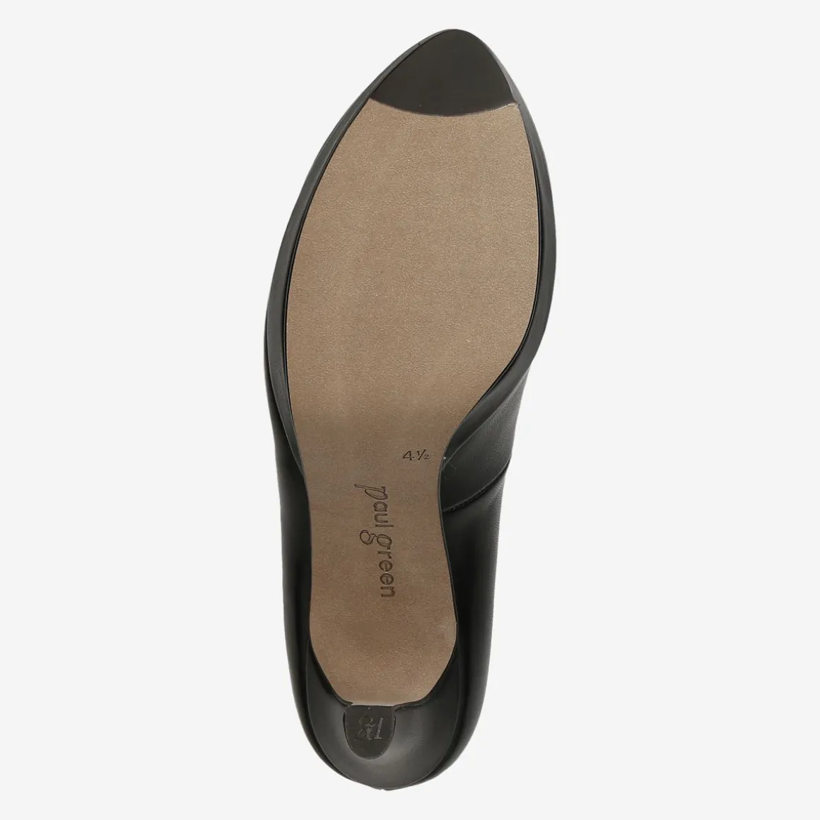 Black ladies pumps from Paul Green. The upper is made of smooth leather. The lining is lined with leather and has a leather insole. The sole is also made of leather. The leather covered heel is about 80 mm high.