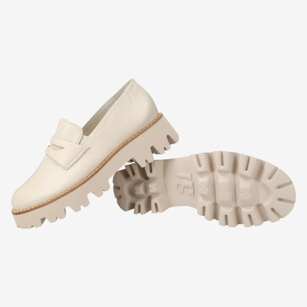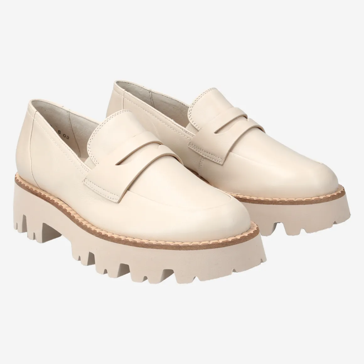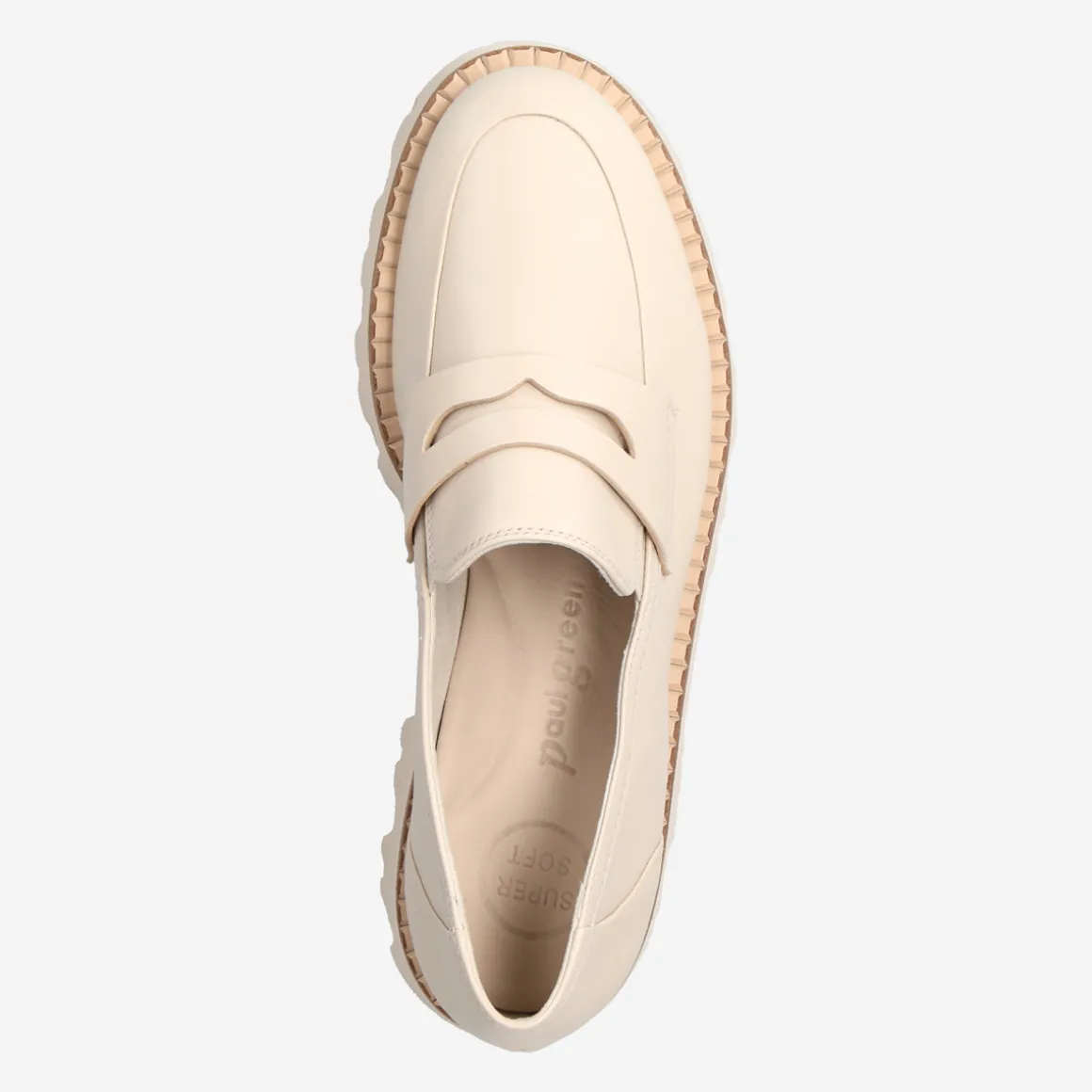 This SUPER SOFT loafer from Paul Green is sporty, stylish and will accompany you on an extended shopping trip as well as to the office. The beige smooth leather makes a fashion statement with the tonal sole and freshens up any look atmospherically. An elasticated side strap offers perfect support. The super soft footbed guarantees an excellent wearing feeling. Let yourself be inspired! Paul Green makes shoes with great passion and mastery, which is expressed in perfection, quality, style and fit. The result: a unique, uplifting wearing experience! The Paul Green effect.