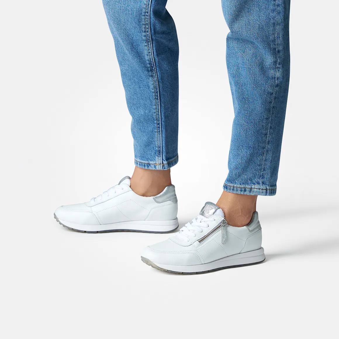 These SUPER SOFT sneakers with RELAX-WEITE from Paul Green score with uncomplicated handling and high wearing properties. Made of soft smooth leather in white with silver details, the pair exudes sophistication. The zipper on the side makes getting in and out a breeze. Soft leather lining with TENCELâ„¢ fibers optimizes cozy comfort. Breathable insole can be removed and replaced with your own insoles, depending on your preference. This model leaves nothing to be desired in terms of style and comfort. Paul Green makes shoes with great passion and mastery, expressed in perfection, quality, style and fit. The result: a unique, uplifting wearing experience! The Paul Green effect.