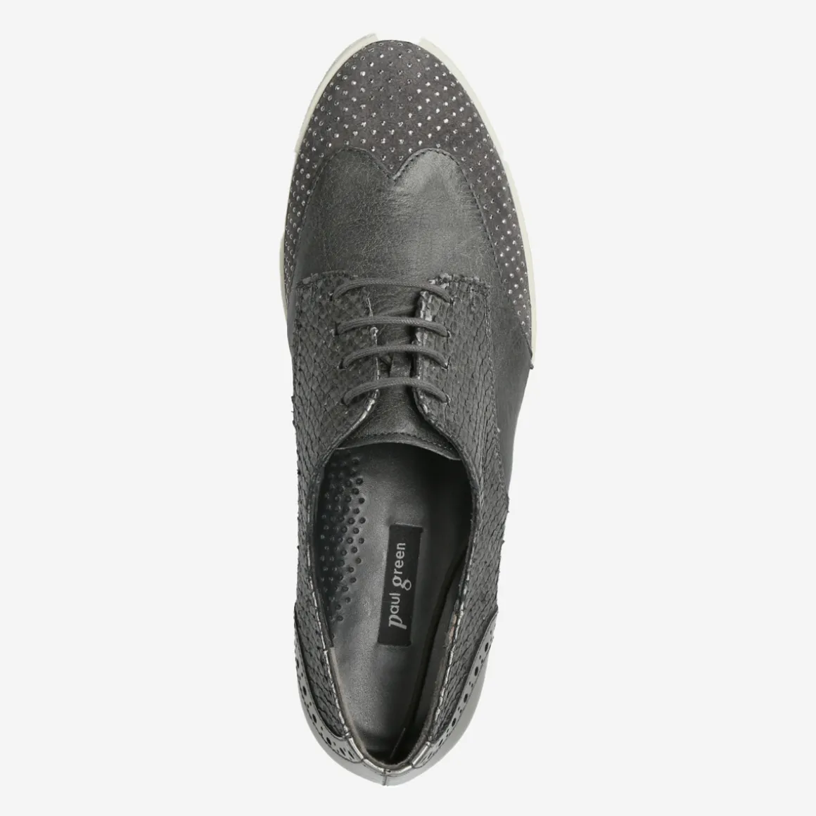 Eye-catching metallic design meets maximum wearing comfort: this gray lace-up from Paul Green convinces all along the line. Made of a trendy leather material mix, the shoe is the perfect complement to her casual look. Also in terms of comfort, these shoes leave nothing to be desired with their cover sole and lining, both made of leather. In addition, these women’s sneakers are equipped with a sturdy sole made of rubber. The heel height is 15 mm.