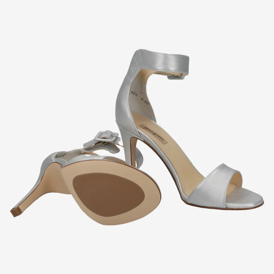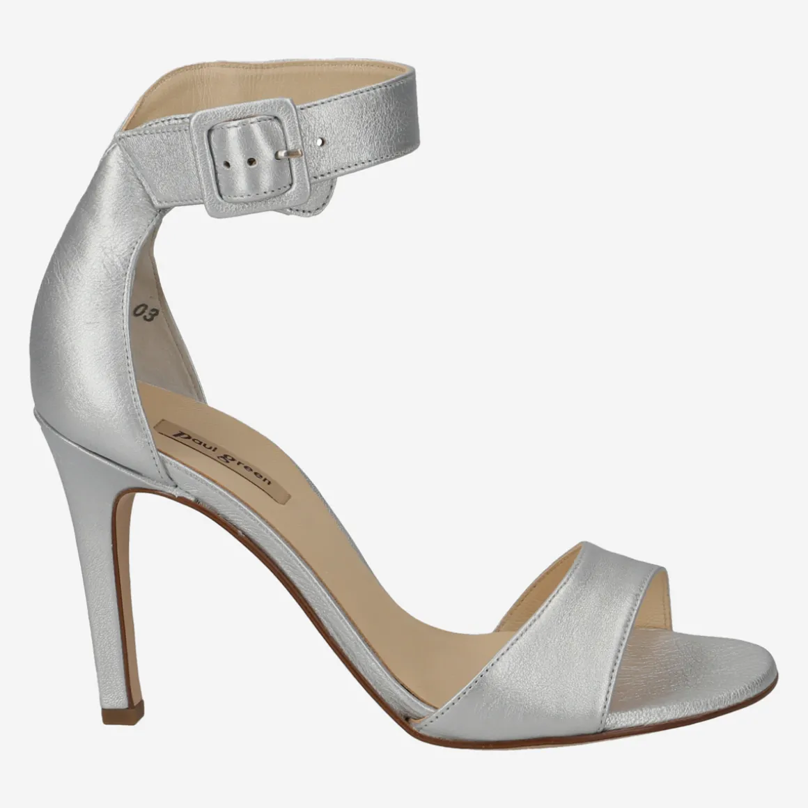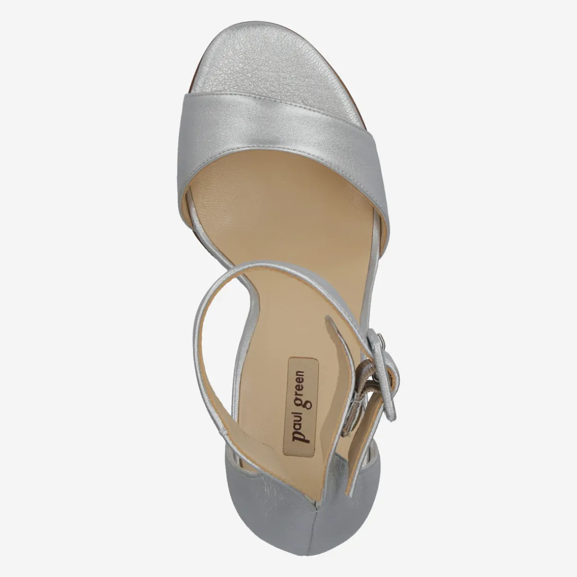 A ravishing pair for your exclusive occasion are these strappy sandals from Paul Green. The extravagant model presents itself in silver metallic leather, a narrow strap with leather-covered clasp and push button for quick on and off. The high funnel heel puts your feet breathtakingly in scene. Enchanting high heels through and through for confident ladies! Paul Green makes shoes with great passion and mastery, which is expressed in perfection, quality, style and fit. The result: a unique, uplifting wearing experience! The Paul Green effect.
