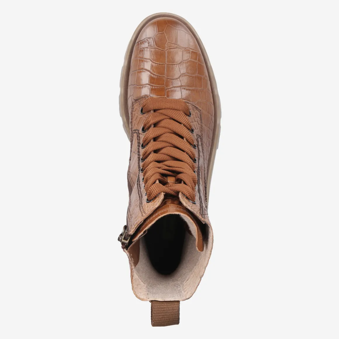 With these boots you give her autumn look an unmistakable sporty touch. The brown leather in reptile look enhances the shoe and thus their look and ensures trendy appearances. The sole in partially transparent optics makes the shoe unique and it creates a harmonious overall picture. Via the zipper the entry is very easy, so you can use the lacing only for your individual adjustment.