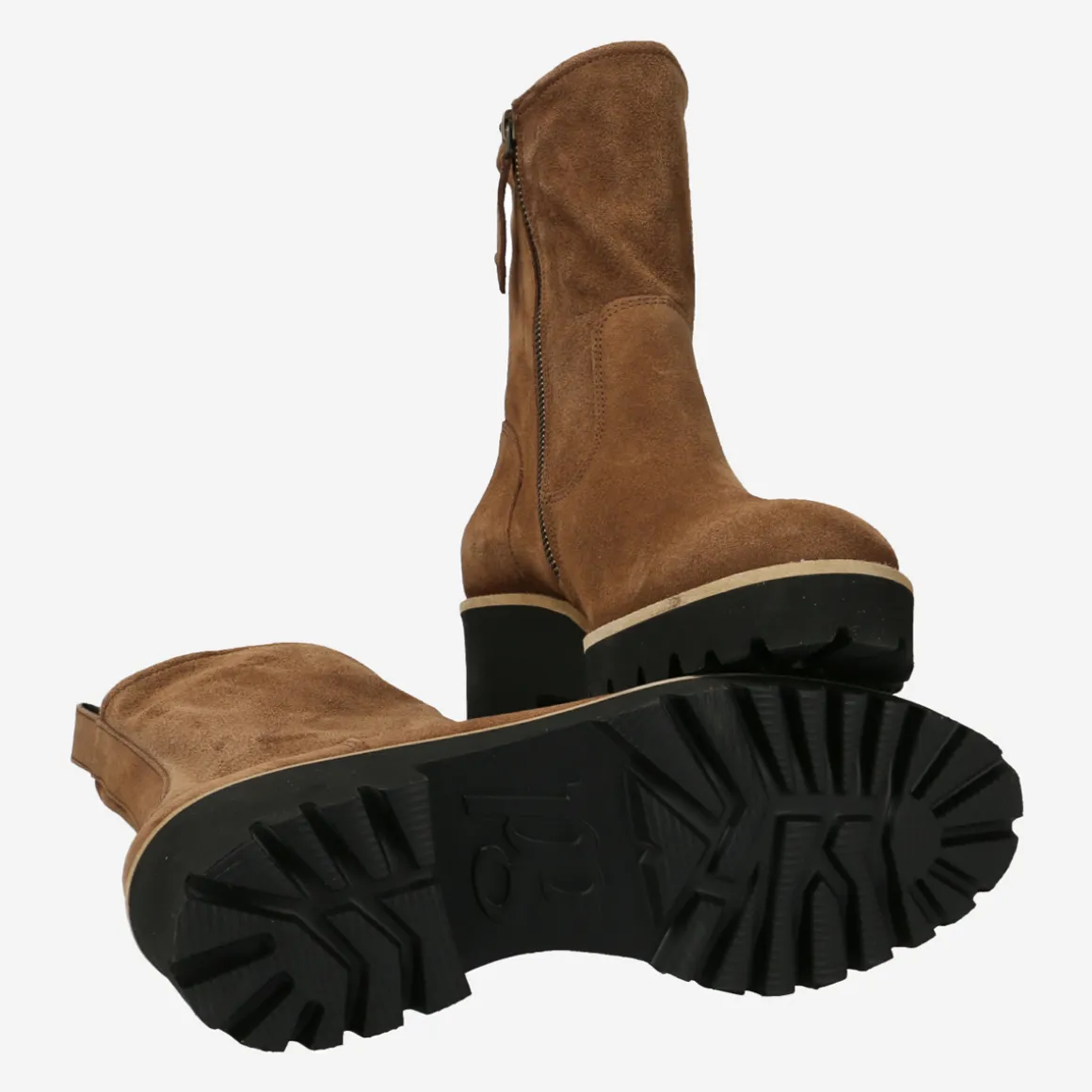 - Zipper closure, block heel, platform heel, entry loop, decorative stitching, breathable