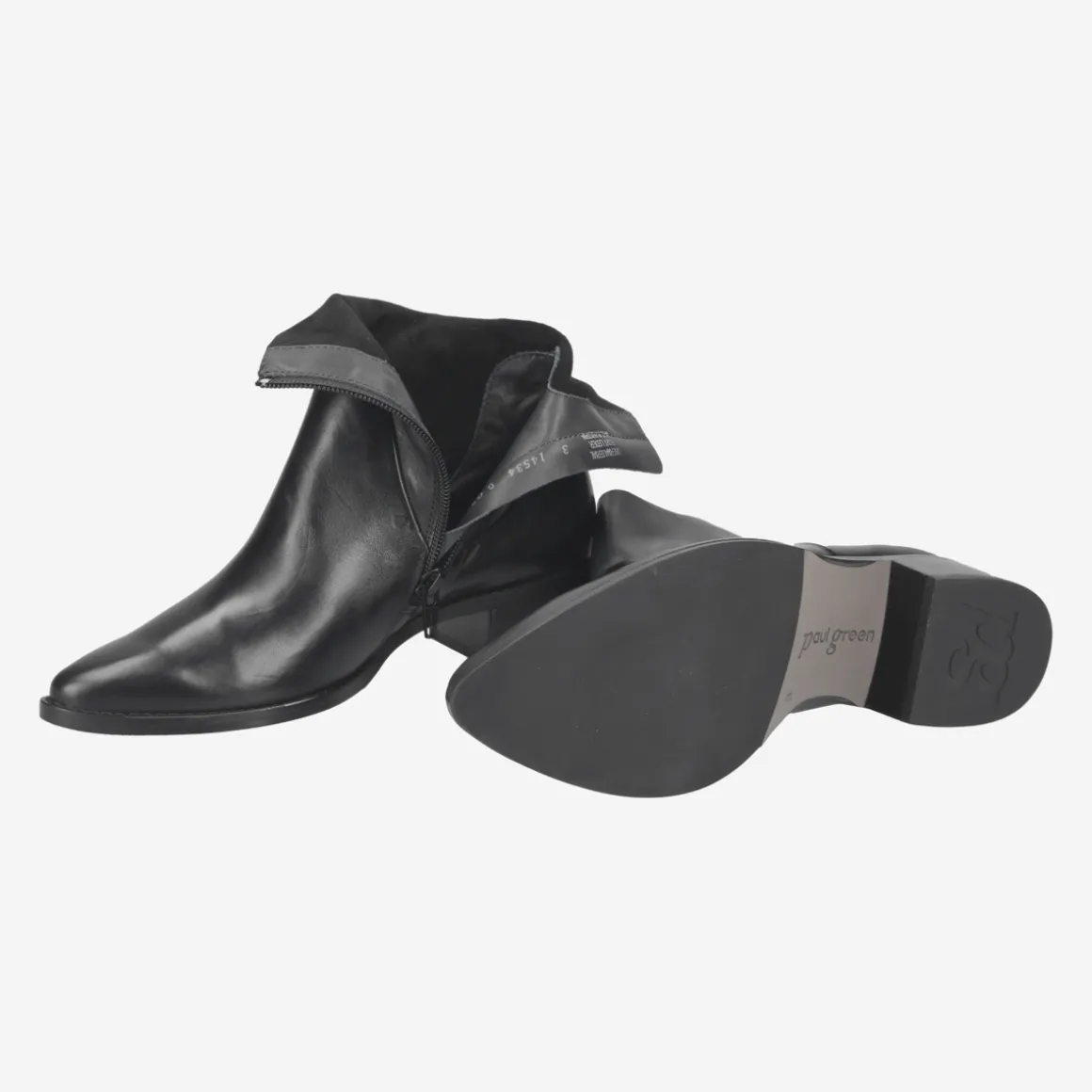 These soft ankle boots from Paul Green are true all-rounders. High-quality black smooth leather and a slightly pointed toe cap present themselves in a clean design. The upper shaft edge made of liningless leather provides unmistakable coolness. A zipper on the inside ensures quick on and off. Whether for business, everyday or shopping tour, with these boots you always appear stylish! Paul Green makes shoes with great passion and mastery, which is expressed in perfection, quality, style and fit. The result: a unique, uplifting wearing experience! The Paul Green effect.