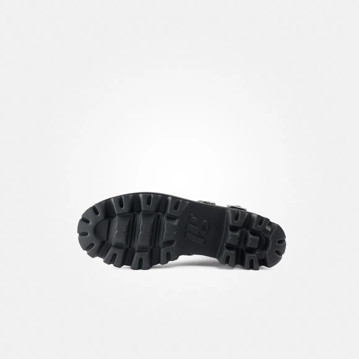 - Made in Europe PFI Eco-Label LWG – Leather Working Group certified, decorative metal fasteners, zipper, decorative stitching, block heel, platform sole