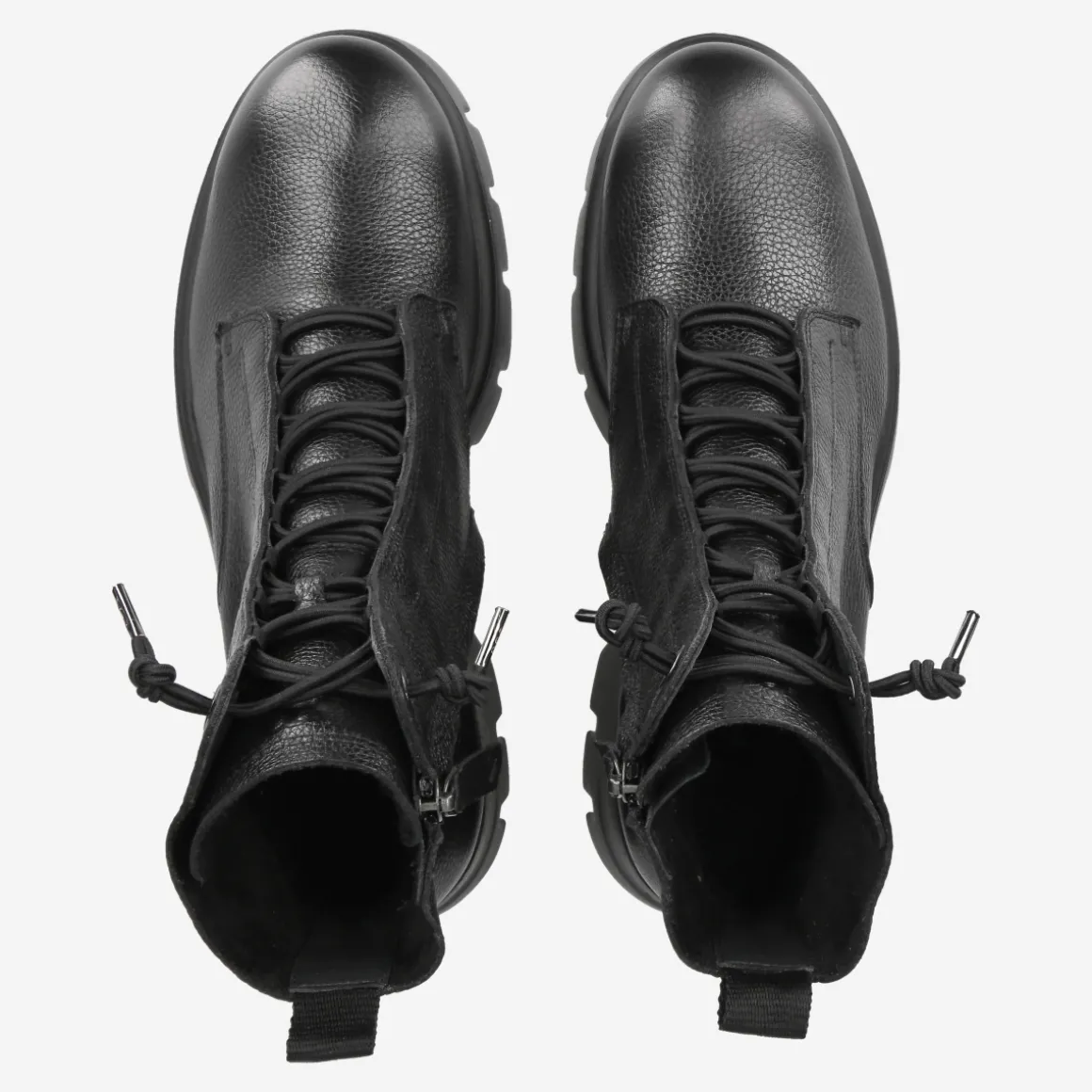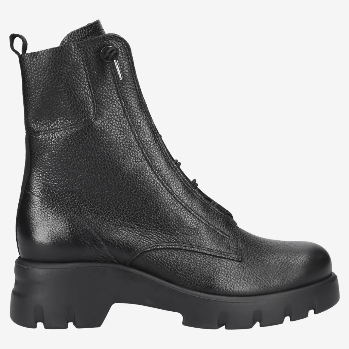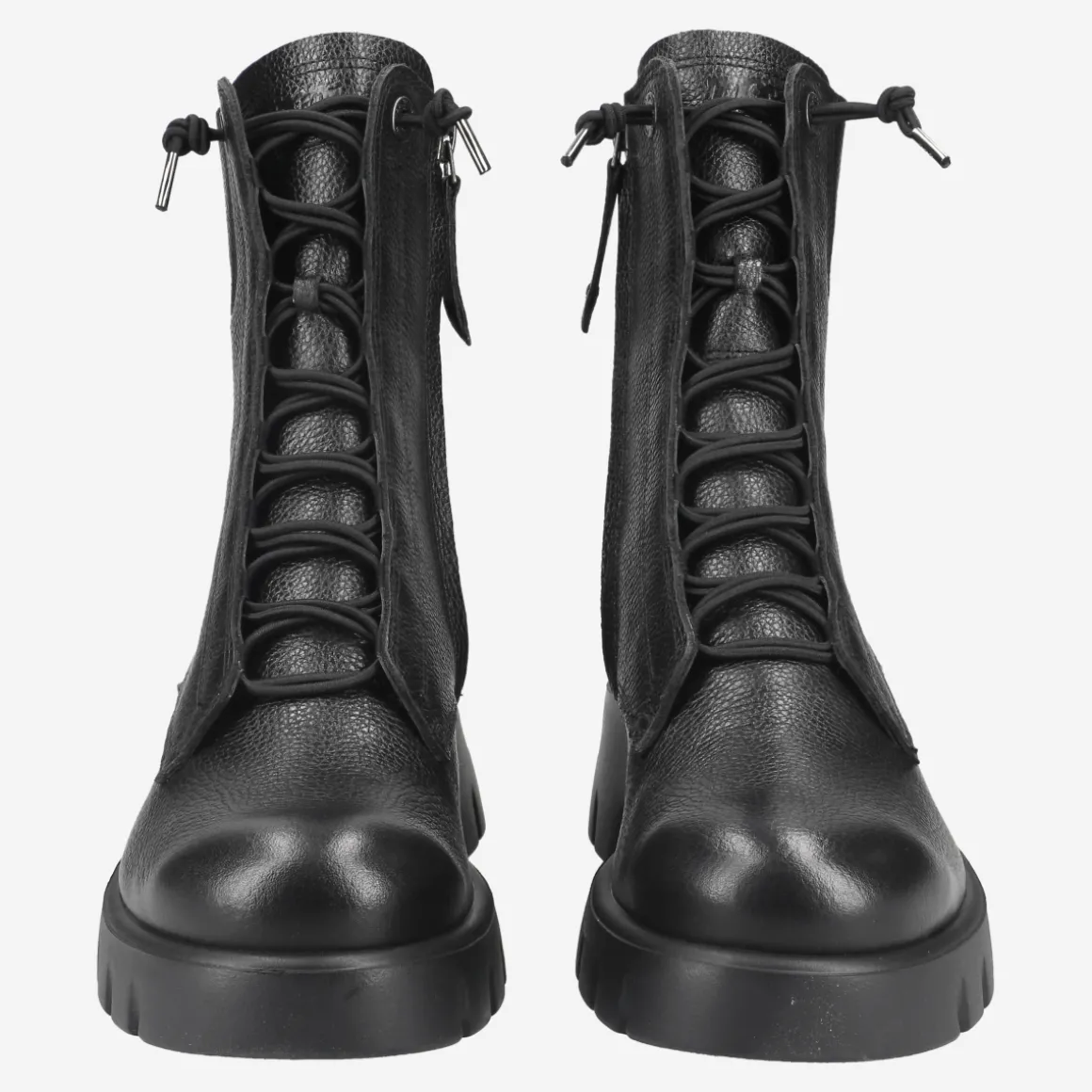 - Made in Europe PFI Eco-Label LWG – Leather Working Group certified, zipper, block heel, platform sole, entry loop, embossed logo, leather application on zipper, double elastic lacing for flexible fit