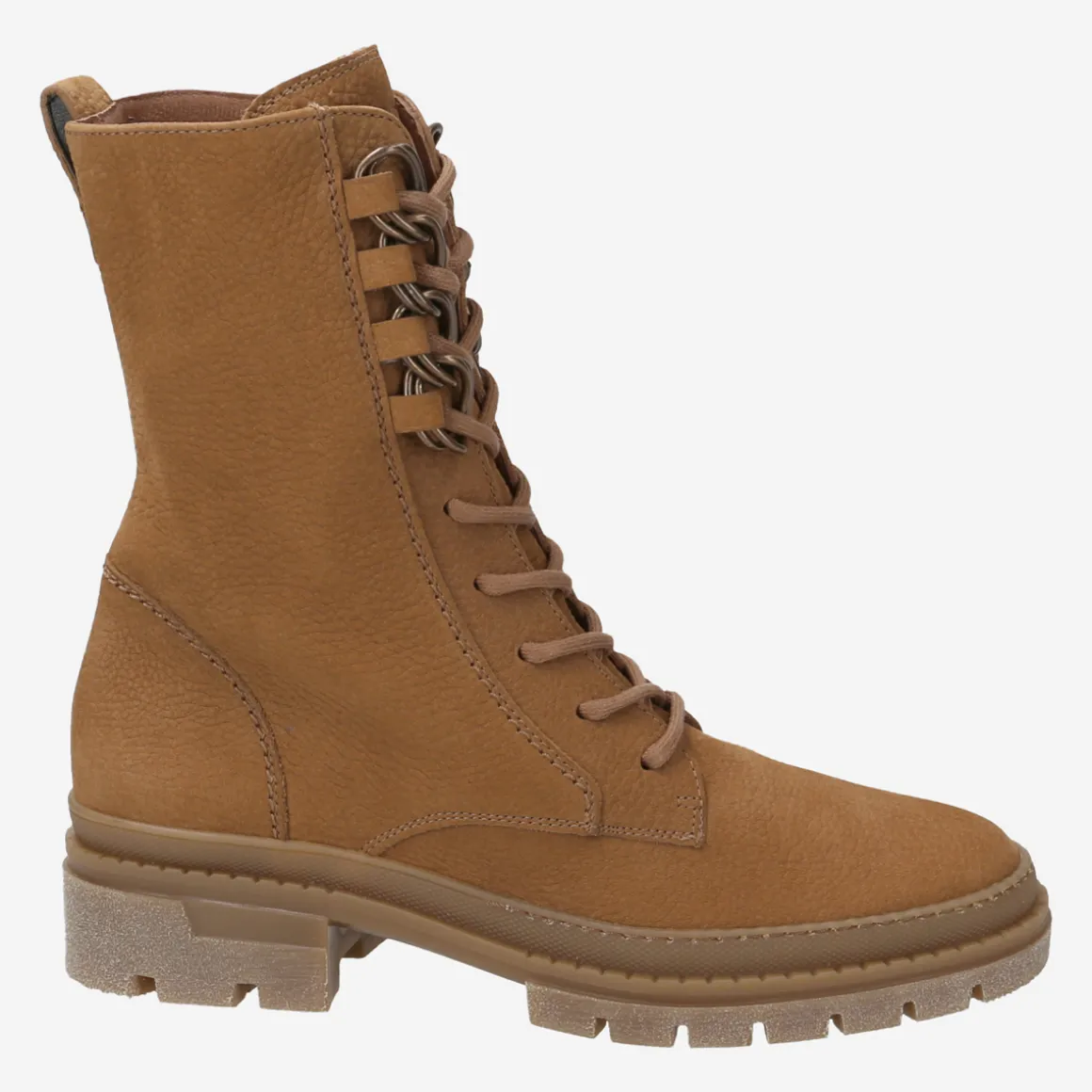 This ankle boot by Paul Green is an absolute cream of the new collection! It forms a great leg by the high, slim shaft, and inspires with the cognac-brown nubuck leather! The non-slip profile sole is complemented by a comfortable block heel. The highlight of this statement boot is the upper eyelets, which are rocked by decorative chain elements. Here, in addition to the casual design, you will also enjoy dreamlike comfort, because Paul Green cushions your foot in loose and airy terry cloth, which is complemented by a leather cover sole of high quality.
