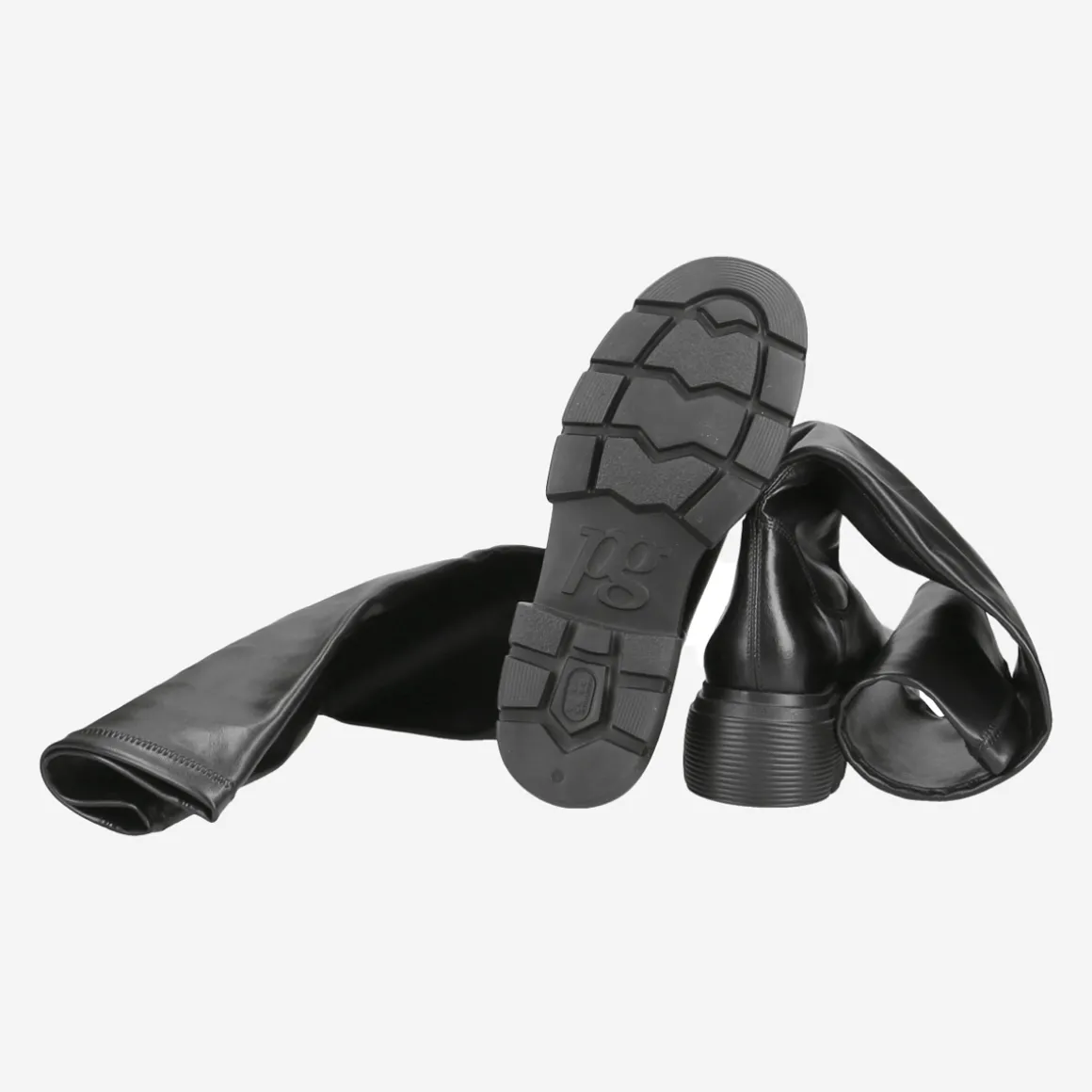 Slim over-the-knee boots by Paul Green are one of the favorite outfits of fashion-conscious women. The elegant smooth leather in black is complemented by highly elastic stretch material in the calf area. Together with the slightly progressive outsole, every step will be a pleasure. This model is made for fashionable, feminine silhouettes! Paul Green makes shoes with great passion and mastery, which is expressed in perfection, quality, style and fit. The result: a unique, uplifting feel! The Paul Green effect.