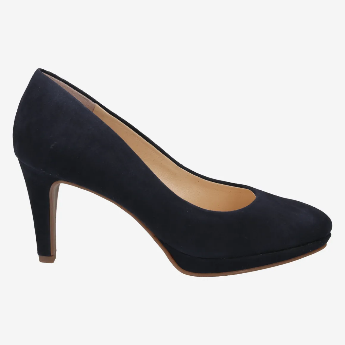 Give your stylish appearance modern class with these pumps from Paul Green. The chic model impresses with dark blue velvet leather and beautiful leather-covered heel. A thin platform sole impresses with a particularly comfortable feel. Complement your evening look or office wardrobe with this pair! Paul Green makes shoes with great passion and mastery, which is expressed in perfection, quality, style and fit. The result: a unique, uplifting wearing experience! The Paul Green effect.