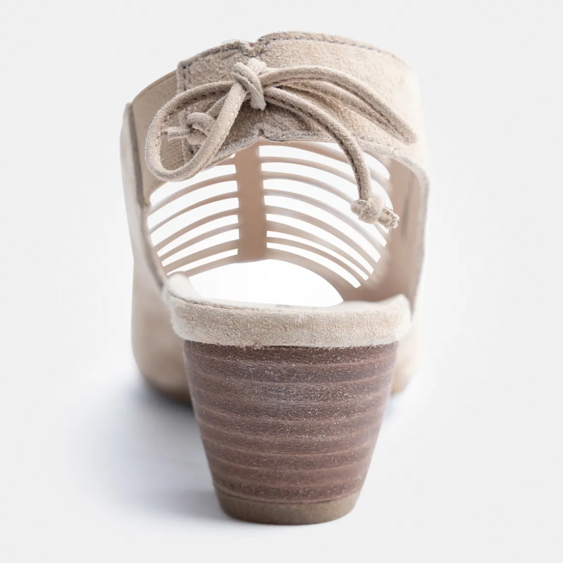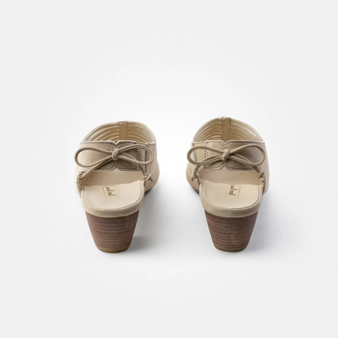 - slanted block heel, bow appliqué, cut-out, stretch insert, peep-toe sandal