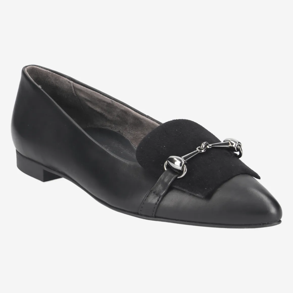 Style-conscious fashion women love these SUPER SOFT ballerinas from Paul Green, because they are the perfect compromise between elegance and comfort. Like this pair made of black smooth leather, which is styled very trendy with velvet leather tab and decorative bridle. The flexible outsole adds a touch of comfort. From jeans outfit to business style, these ballerinas add a feminine touch to any look. Paul Green makes shoes with great passion and mastery, expressed in perfection, quality, style and fit. The result: a unique, uplifting wearing experience! The Paul Green effect.