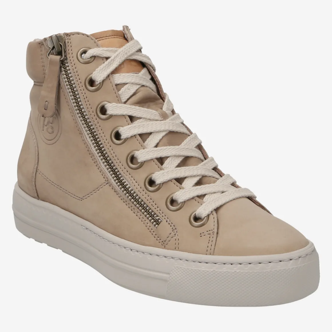 Enjoy the casual street style of Paul Green! Because Paul Green has thought of everything in this high sneaker, so you can also feel really comfortable in it. The shaft is padded, as well as the Super Soft heel cap was incorporated here. The side zipper is both decorative and practical: it makes it super easy to put on! The beige nubuck leather looks very casual and charismatic due to the authentically worked used look. This style has indeed ALWAYS season!