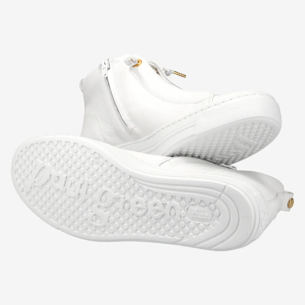 These fashionable SUPER SOFT hightop pairs are unrestrictedly comfortable and therefore perfect for leisure time. The model inspires with soft smooth leather in white. The elastic laces complete a relaxed feel. A concealed zipper on the inside optimizes quick on and off. The soft leather lining with TENCELâ„¢ fibers delights with excellent coziness. Prove individuality with these sneakers! Paul Green makes shoes with great passion and mastery, which is expressed in perfection, quality, style and fit. The result: a unique, uplifting wearing experience! The Paul Green effect.