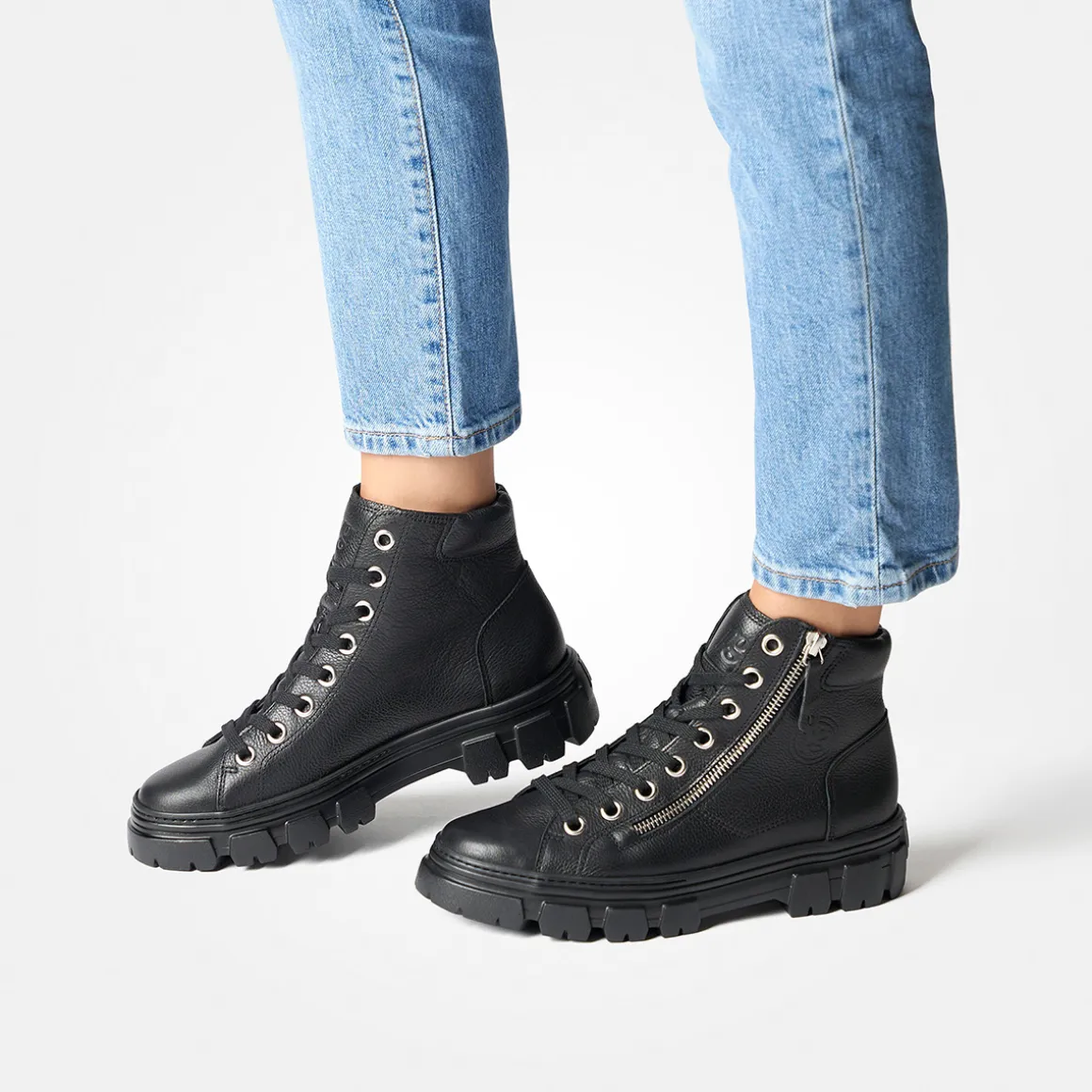 These SUPER SOFT hightop sneakers from Paul Green are unrestrictedly comfortable, making them perfect for casual wear. The cuddly pair made of soft smooth leather in black provides a great look with the side zipper. Thanks to the super soft finish and leather lining with TENCELâ„¢ fibers, this model offers an excellent walking experience. The matching progressive outsole rounds off the style in a trendy way and convinces with a safe and relaxed appearance. Complete your outfit with this great pair!
