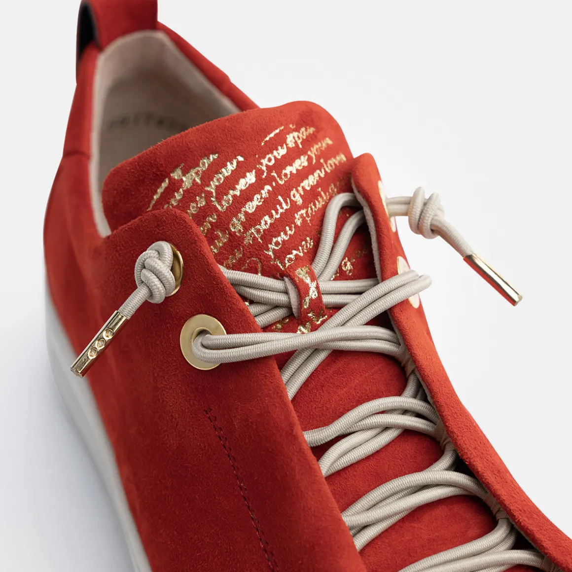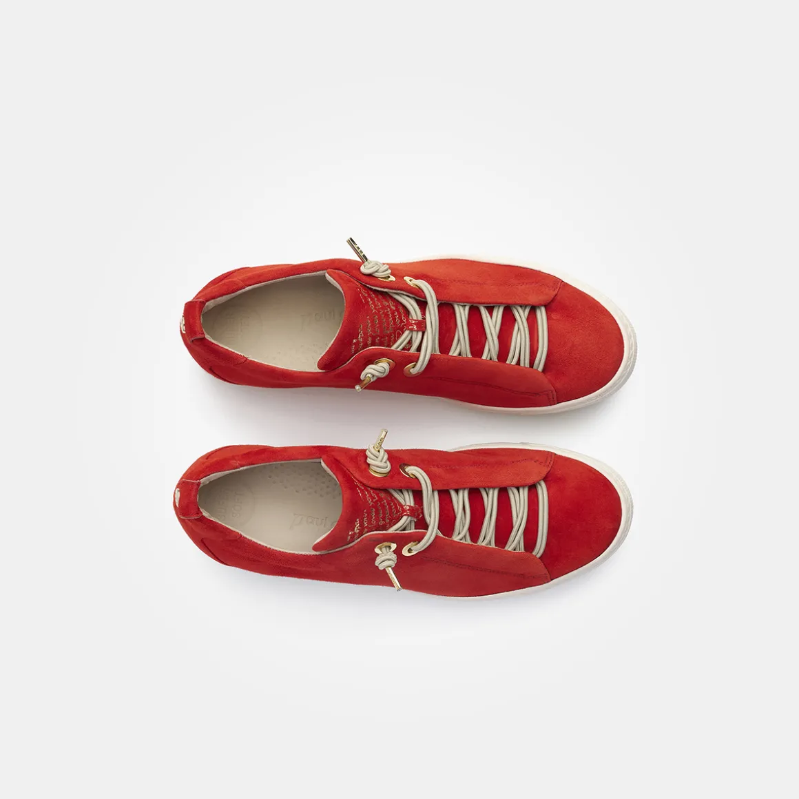 These SUPER SOFT Pauls from Paul Green are perfect for trendy everyday styles. The model impresses with red velvet leather and elegant details. The elasticated laces ensure a relaxed feel. Thanks to the super soft finish, this pair provides extra comfort. The wide outsole impresses with a trendy look. A perfect duo for leisure time or the office! Paul Green makes shoes with great passion, which is expressed in perfection, quality, style and fit. The result: a unique, uplifting feel!