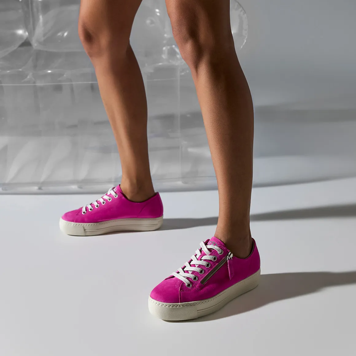 These SUPER SOFT Pauls by Paul Green are a real eye-catcher. The supple velvet leather with an eye-catching pink color gives the shoe a dynamic and modern look and makes it a real statement piece. A zipper at the side makes them easy to put on and take off. The platform sole of the sneaker not only ensures a trendy style, but also a comfortable fit. Whether worn with jeans and a T-shirt or a summer dress, this pair is a real eye-catcher! Paul Green makes shoes with great passion, which is expressed in perfection, quality, style and fit. The result: a unique, uplifting feel!
