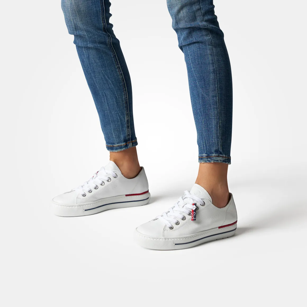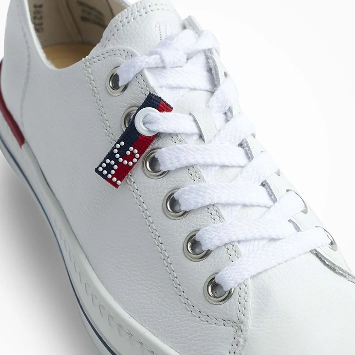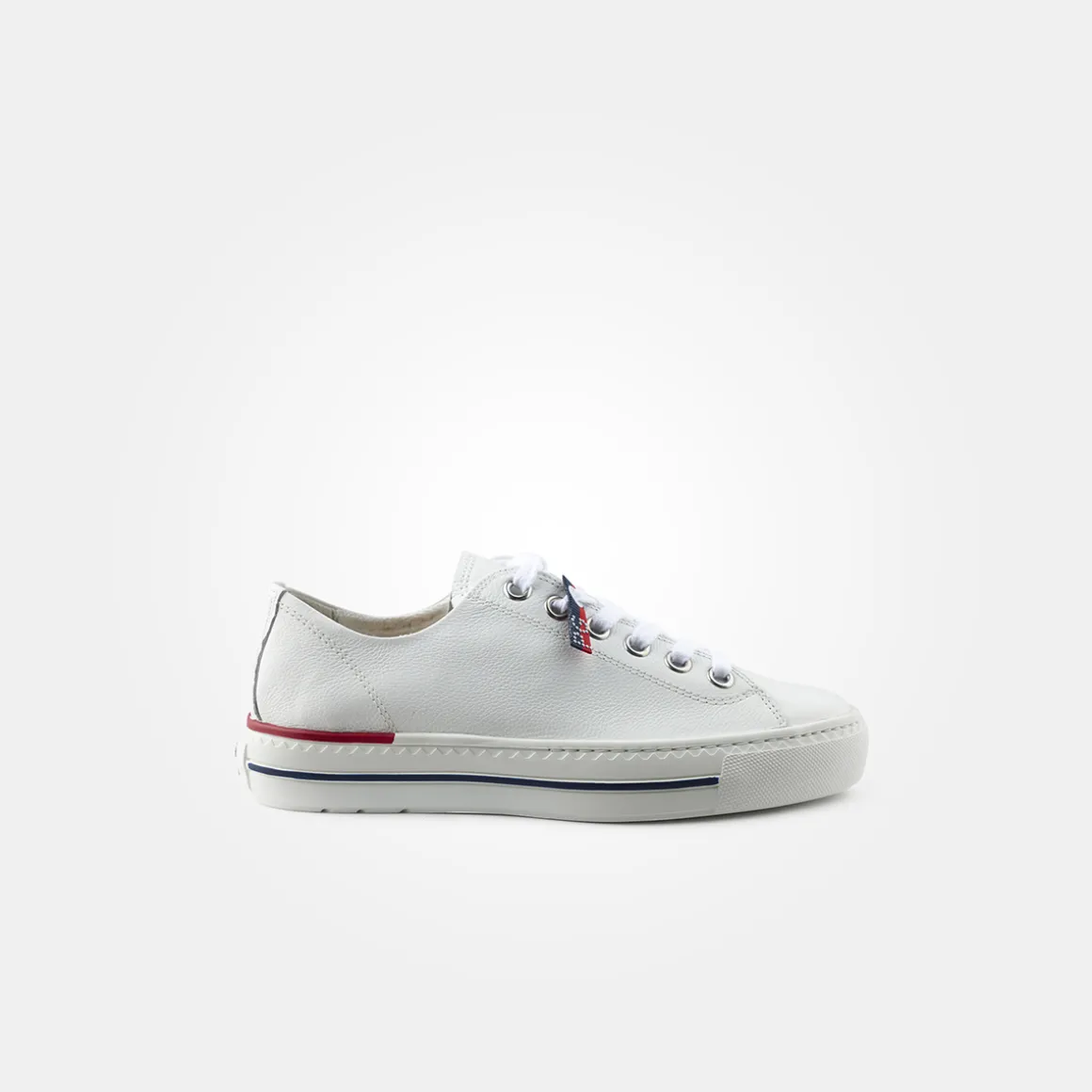 - Extralight sole, color contrast on the sole in blue and red, logo embossing