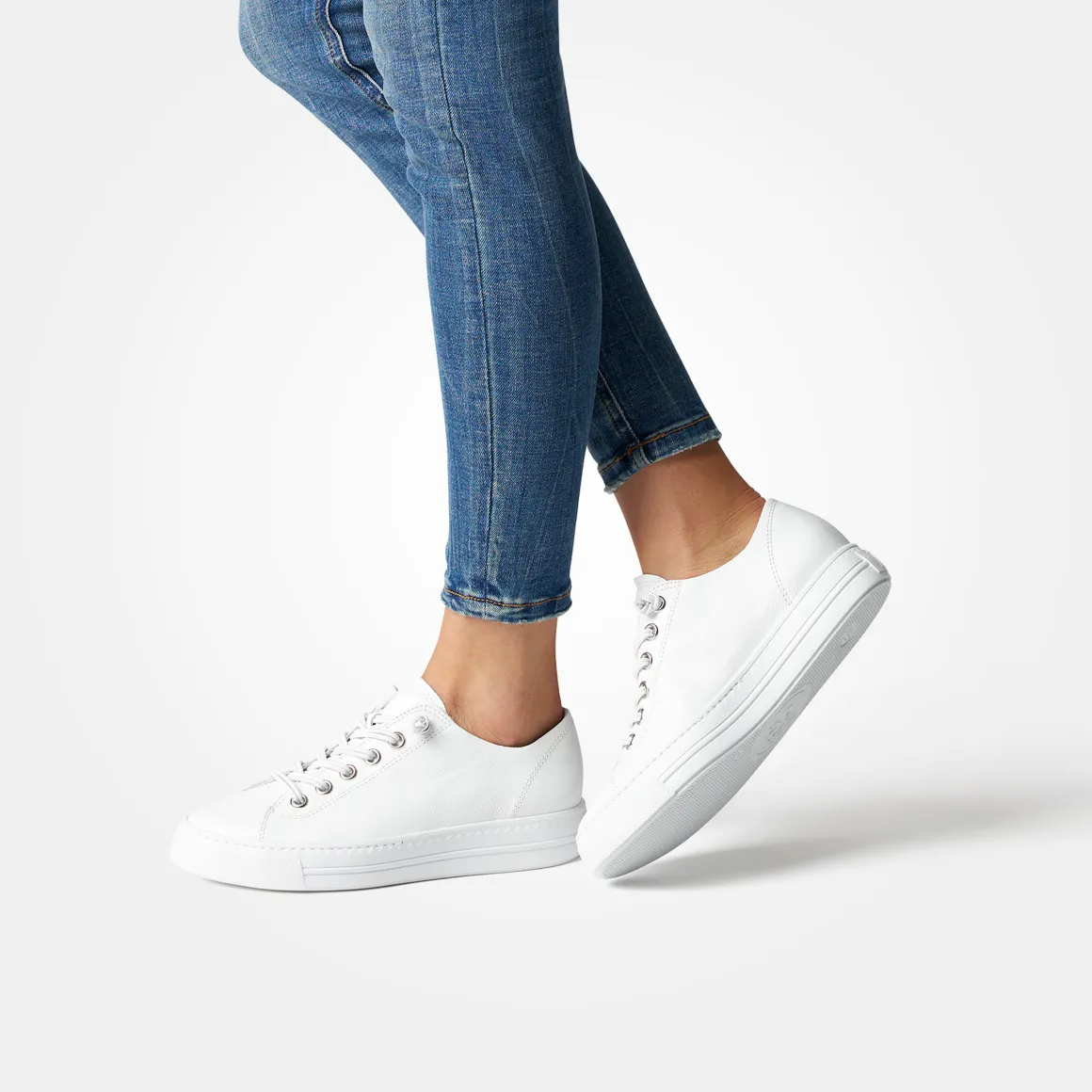 The cult around the white sneaker continues! And this time in a refined design! Paul Green processed in this model finest calf leather, and complements the look with a practical quick lacing system made of rubber. The special cut provides more width, the soft footbed gives you pleasant comfort. The extra-light sole makes this model a companion you will love!