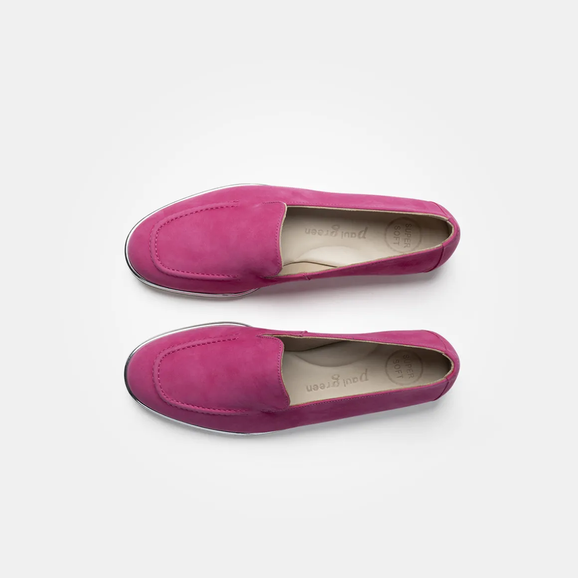 These SUPER SOFT slip-on shoes by Paul Green are true classics with a simple elegance. The soft material made from pink nubuck leather gently hugs the foot and the super soft design makes them extremely comfortable to wear. This favorite accessory is pleasantly flat and has a flexible outsole with an elegant metallic frame, making it versatile to combine. Look forward to relaxed trips! Paul Green stands for women’s shoes of the highest quality, made with craftsmanship and passion. Each of our shoes is made by qualified master shoemakers in up to 160 steps. The result is quality that you can see and feel.