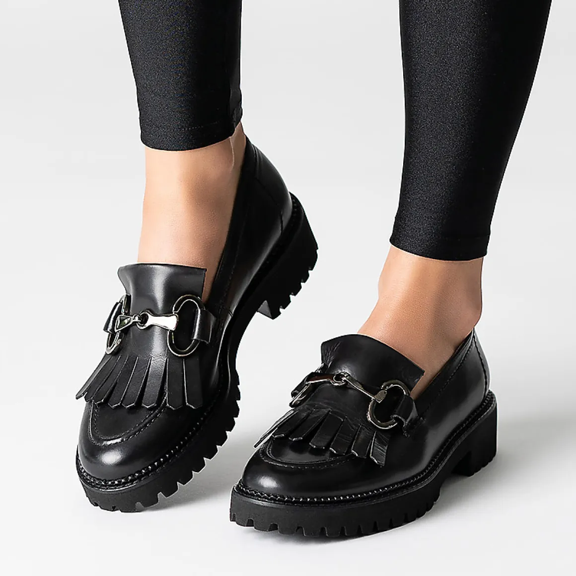 - Metal loafer application, platform sole, leather application, SuperSoft, supple leather, soft heel cap, light and flexible outsole, soft footbed, decorative stitching