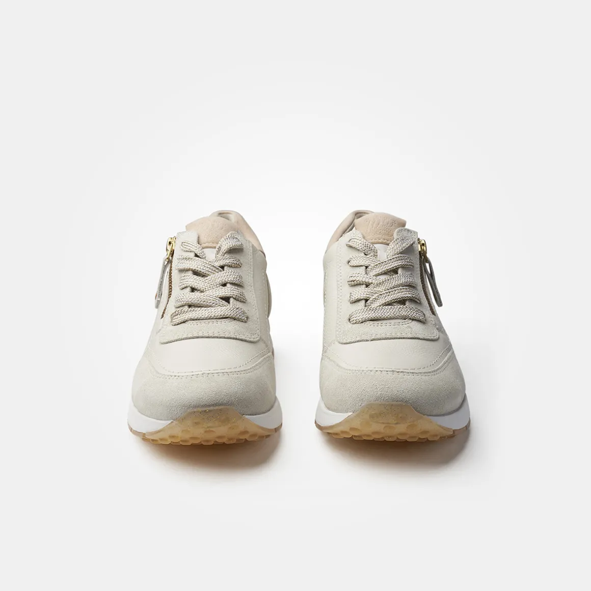 These SUPER SOFT trainers with RELAX-WEITE by Paul Green impress with their uncomplicated handling and high wearing comfort. Made from soft suede and smooth leather in off-white with beige, this pair exudes sophistication. The zipper on the side makes getting in and out a breeze. Soft leather lining with terrycloth optimizes the cosy comfort. The breathable insole can be removed and replaced with your own insoles as required. This model leaves nothing to be desired in terms of style and comfort. Paul Green makes shoes with great passion, which is expressed in perfection, quality, style and fit. The result: a unique, uplifting wearing experience!