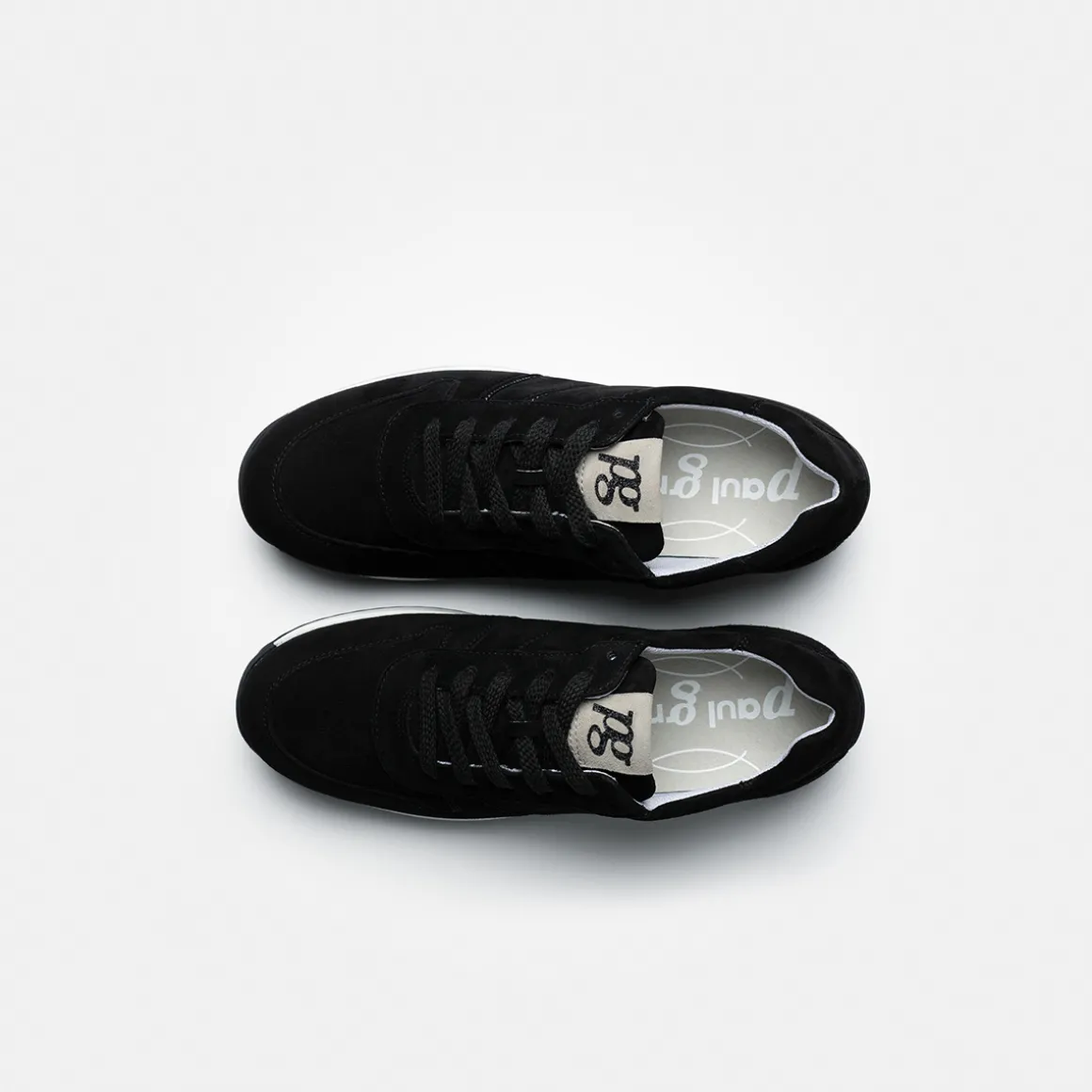These SUPER SOFT trainers with a removable footbed by Paul Green impress with their comfortable style. This model made from soft velvet leather in black has a sophisticated look and a comfortable feel. The glitter stripes on the side add a particularly exclusive touch. The removable removable footbed pampers you with a comfortable fit. A walking-friendly sole offers flexible comfort. A trendy pair for every outfit! Paul Green stands for women’s shoes of the highest quality, made with craftsmanship and passion. Each of our shoes is made by qualified master shoemakers in up to 160 steps. The result is quality that you can see and feel.