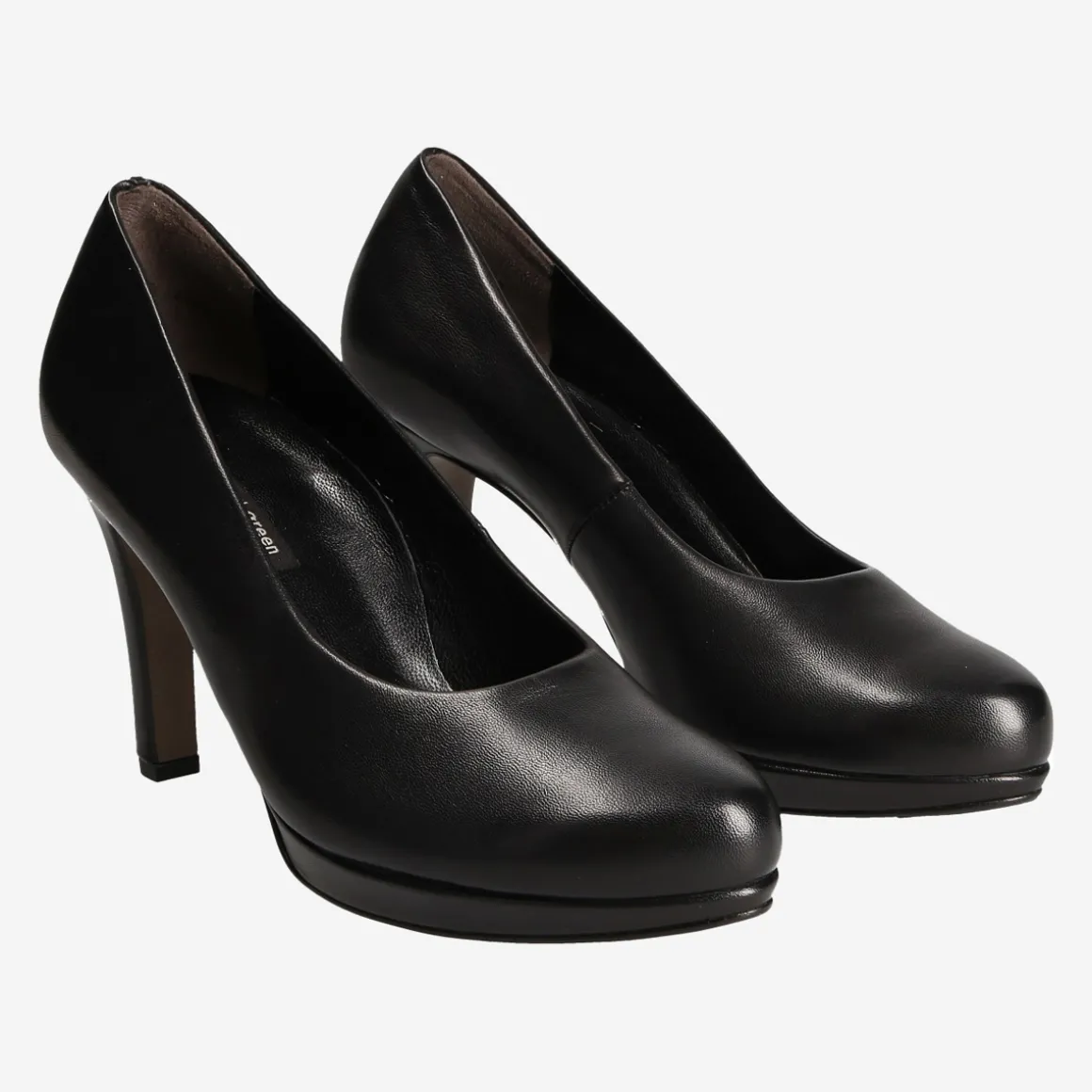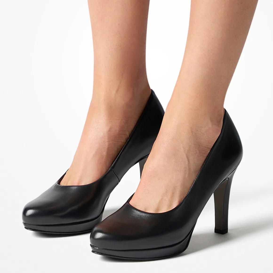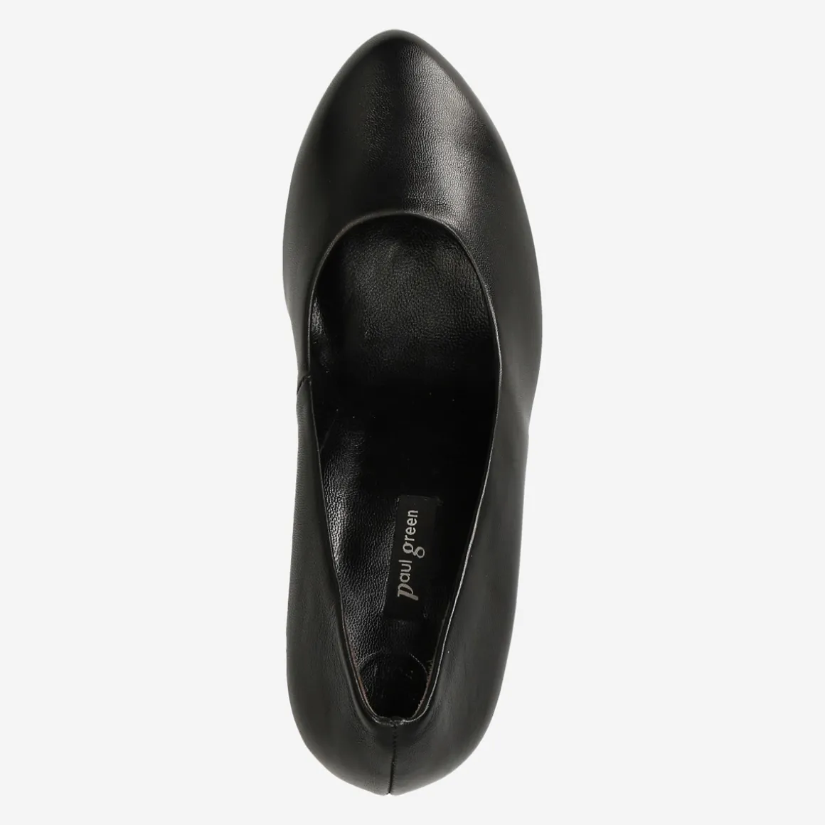 Black ladies pumps from Paul Green. The upper is made of smooth leather. The lining is lined with leather and has a leather insole. The sole is also made of leather. The leather covered heel is about 80 mm high.
