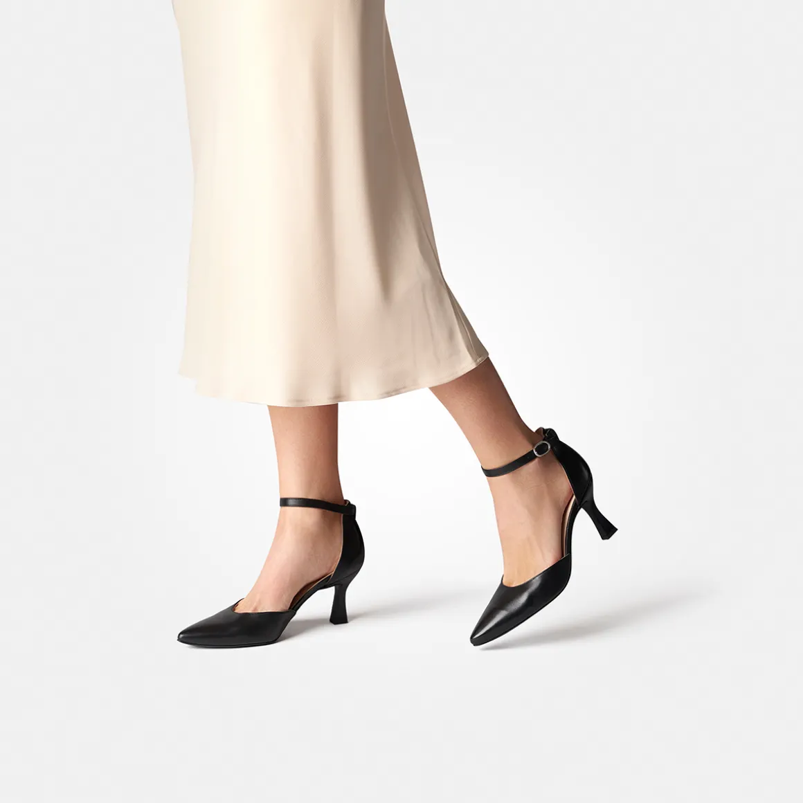 These SUPER SOFT strappy pumps made of delicate smooth leather in black are feminine and noble. The model captivates with the elegant line with tapered shape. The fine ankle strap with push-button buckle is width-adjustable. A leather-covered funnel heel visually sets the leg in scene. Classic and stylish – simply Paul Green! Paul Green makes shoes with great passion and mastery, which is expressed in perfection, quality, style and fit. The result: a unique, uplifting wearing experience! The Paul Green effect.