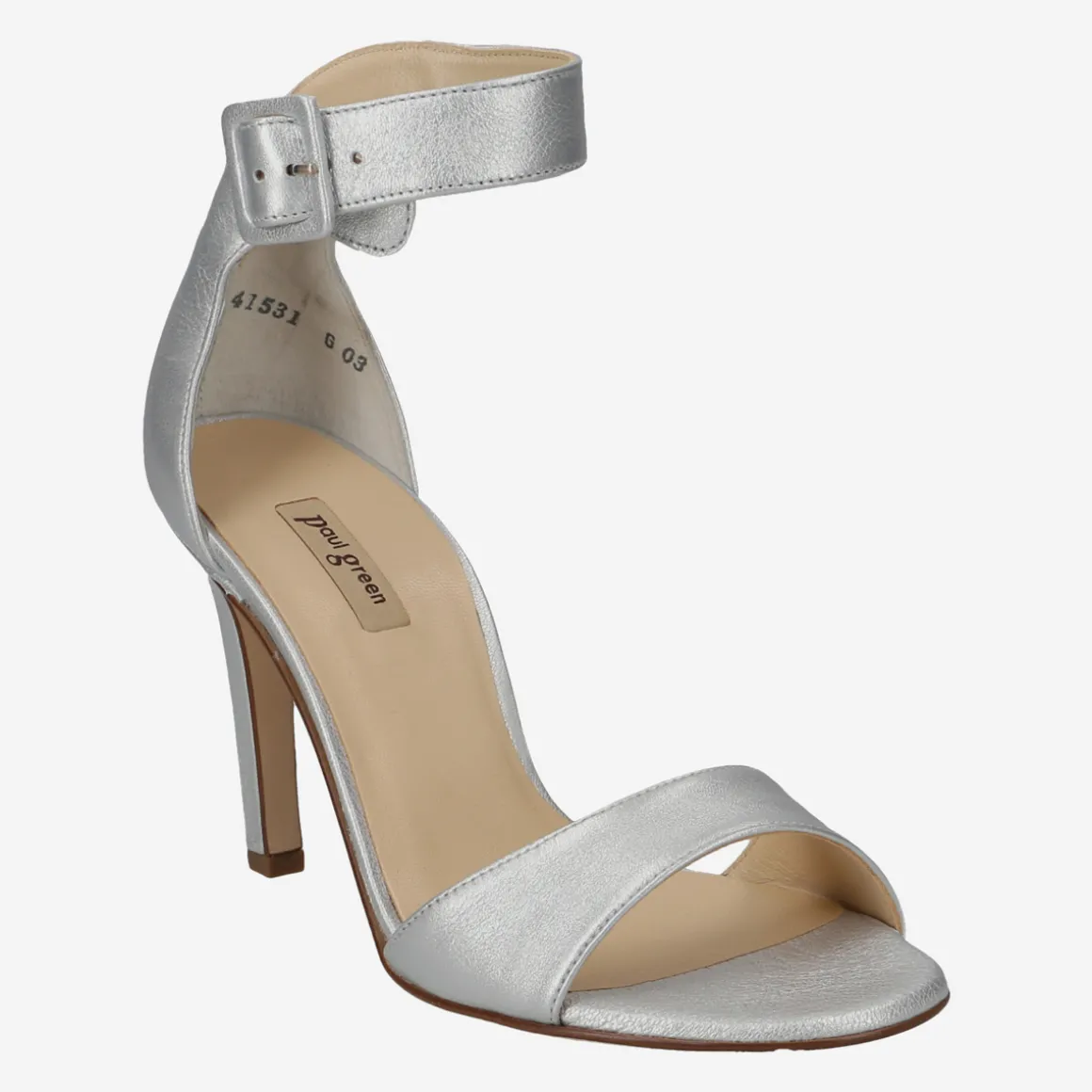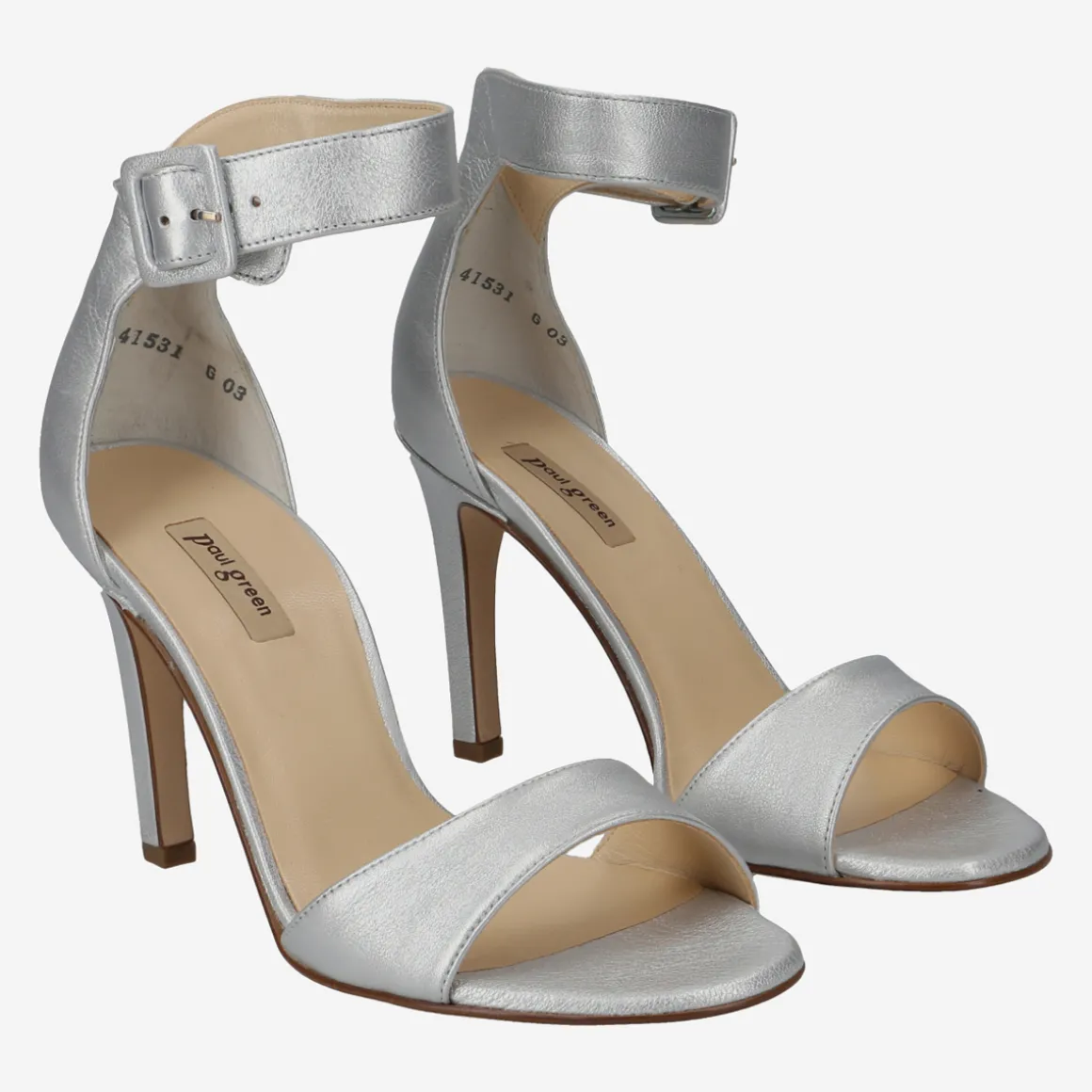 A ravishing pair for your exclusive occasion are these strappy sandals from Paul Green. The extravagant model presents itself in silver metallic leather, a narrow strap with leather-covered clasp and push button for quick on and off. The high funnel heel puts your feet breathtakingly in scene. Enchanting high heels through and through for confident ladies! Paul Green makes shoes with great passion and mastery, which is expressed in perfection, quality, style and fit. The result: a unique, uplifting wearing experience! The Paul Green effect.