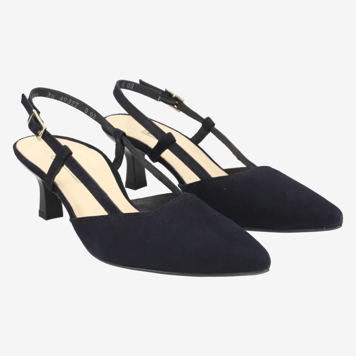 These SUPER SOFT sling sandals from Paul Green present themselves feminine and extravagant. The pair made of soft velvet leather in blue nestles comfortably against the foot. Not only the shapely funnel heel in moderate height draws attention. Also the delicate straps with decorative buckle enchant. Enjoy a carefree, timeless elegance with this model! Paul Green makes shoes with great passion and mastery, which is expressed in perfection, quality, style and fit. The result: a unique, uplifting wearing experience! The Paul Green effect.