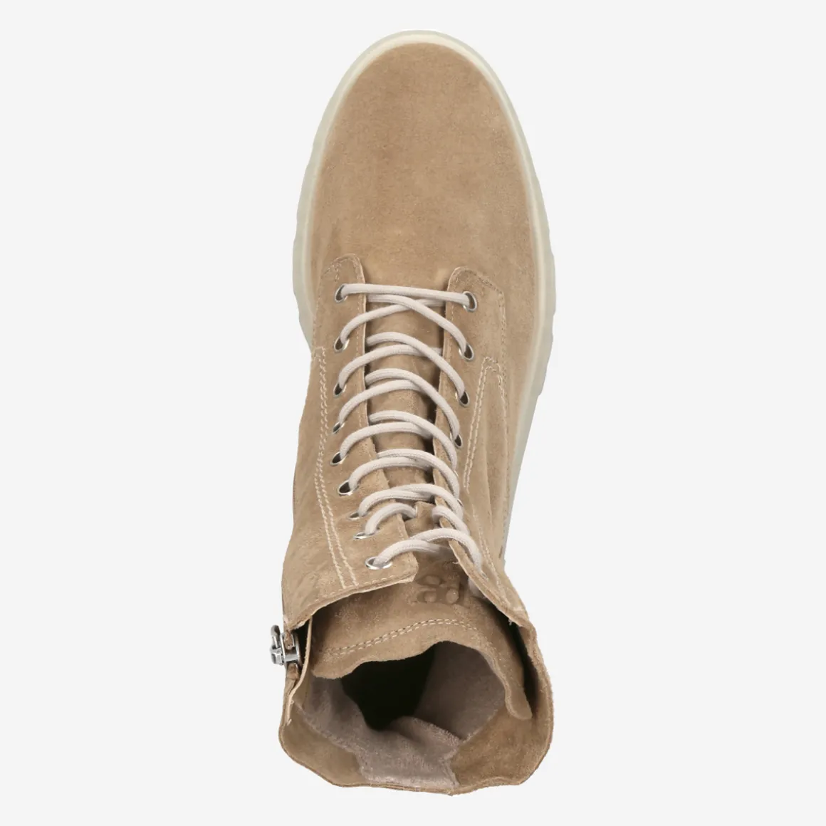 With these boots you give her autumn look a distinctive sporty touch. The brown suede gives the shoe a chic touch and ensures trendy appearances. The sole in partially transparent optics makes the shoe unique and it creates a harmonious overall picture. Via the zipper the entry is very easy, so you can use the lacing only for your individual adjustment.