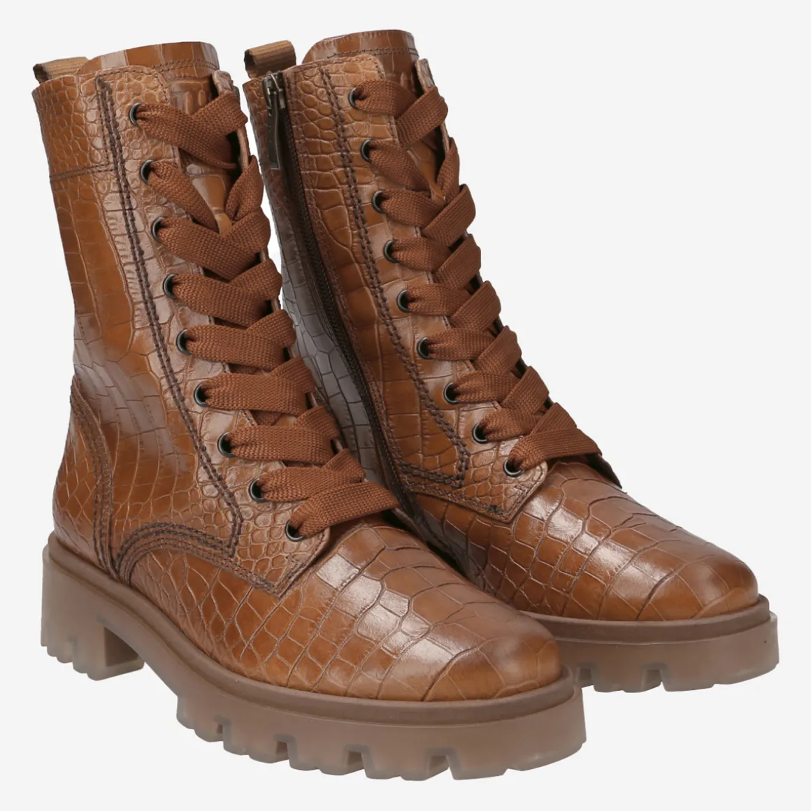With these boots you give her autumn look an unmistakable sporty touch. The brown leather in reptile look enhances the shoe and thus their look and ensures trendy appearances. The sole in partially transparent optics makes the shoe unique and it creates a harmonious overall picture. Via the zipper the entry is very easy, so you can use the lacing only for your individual adjustment.