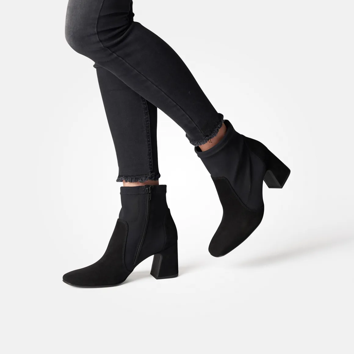 - Zipper, block heel, flexible upper in suede look, “sock-boot style”, cuddly on the ankle, breathable