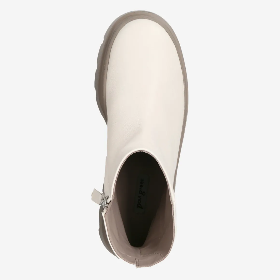 The elegant, clean look of these booties from Paul Green is both visually and in the wearing experience. Supple smooth leather in off-white gently nestles against the foot and provides unbeatable comfort. A zipper on the inside optimizes quick on and off. The thick tread sole complements the trendy look and ensures a comfortable appearance. Let yourself be inspired by this model! Paul Green makes shoes with great passion and mastery, which is expressed in perfection, quality, style and fit. The result: a unique, uplifting wearing experience! The Paul Green effect.