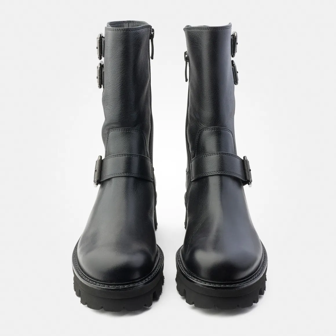 - Made in Europe PFI Eco-Label LWG – Leather Working Group certified, decorative metal fasteners, zipper, decorative stitching, block heel, platform sole