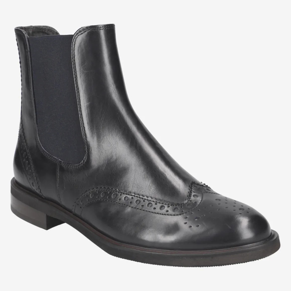 Start the day fashionably with these Chelsea ankle boots from Paul Green! The boots with elastic inserts on the sides can be combined in many ways thanks to the classic color scheme of blue smooth leather. The perforated details provide a particularly attractive look. The casual model convinces with a flexible outsole. A shoe you can rely on – no matter what you are planning! Paul Green shoes have a DNA of elegance and sportiness. This DNA is in every single shoe and in the entire range.