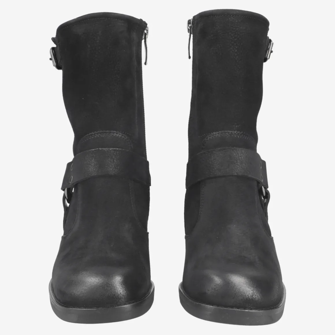 - Made in Europe PFI Eco-Label LWG – Leather Working Group certified, block heel, decorative metal fastening on decorative notch on the shaft, leather straps in biker look, decorative stitching, vintage look, zipper, breathable