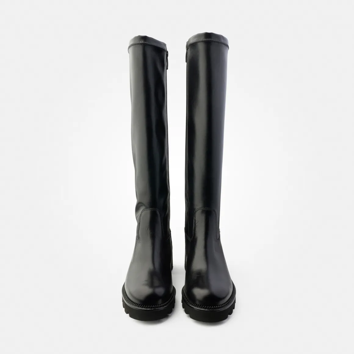 - Made in Europe PFI Eco-Label LWG – Leather Working Group certified, Extra-Light sole (lightweight rubber sole for optimum comfort), entry loop, embossed logo, block heel, decorative stitching, stretch on the shaft