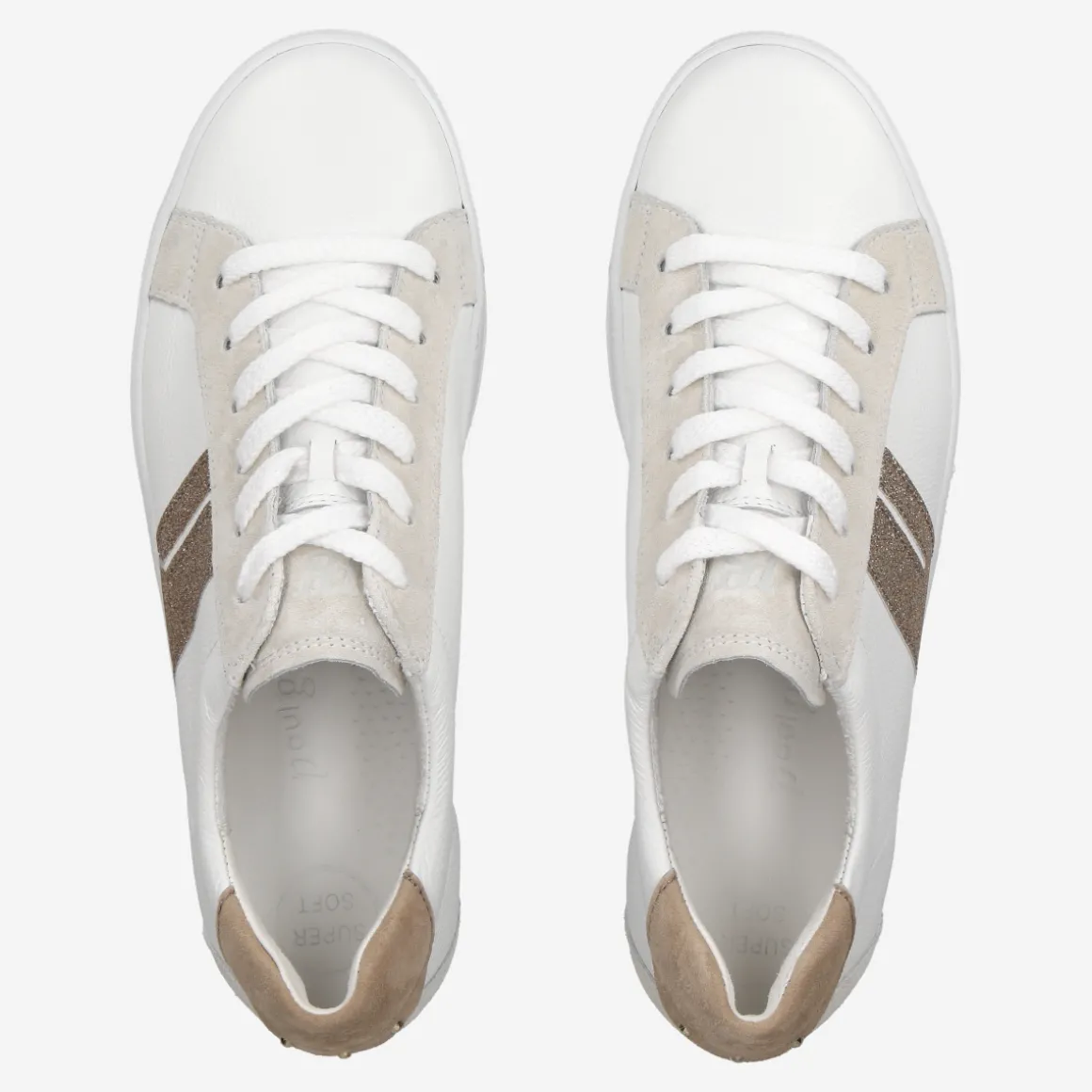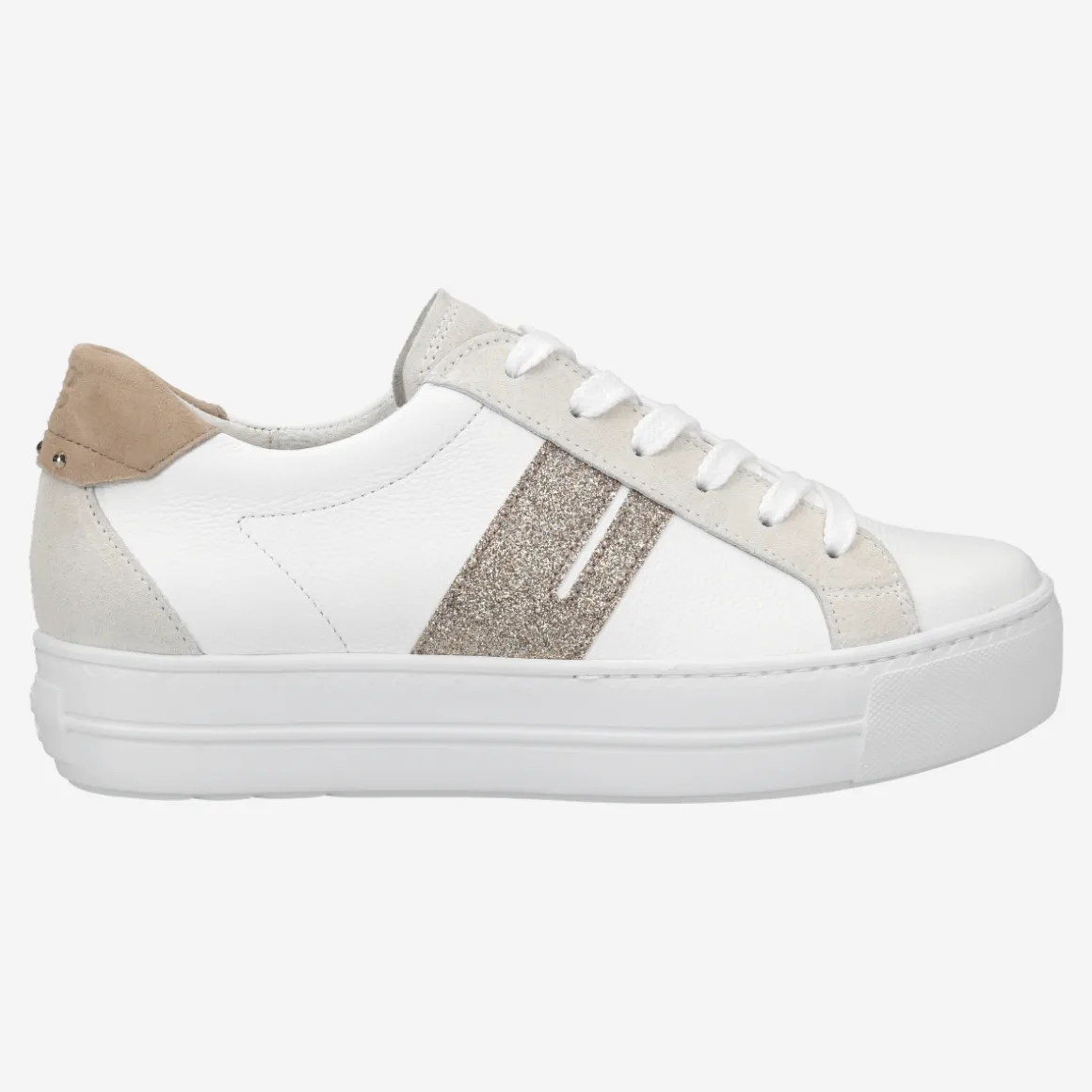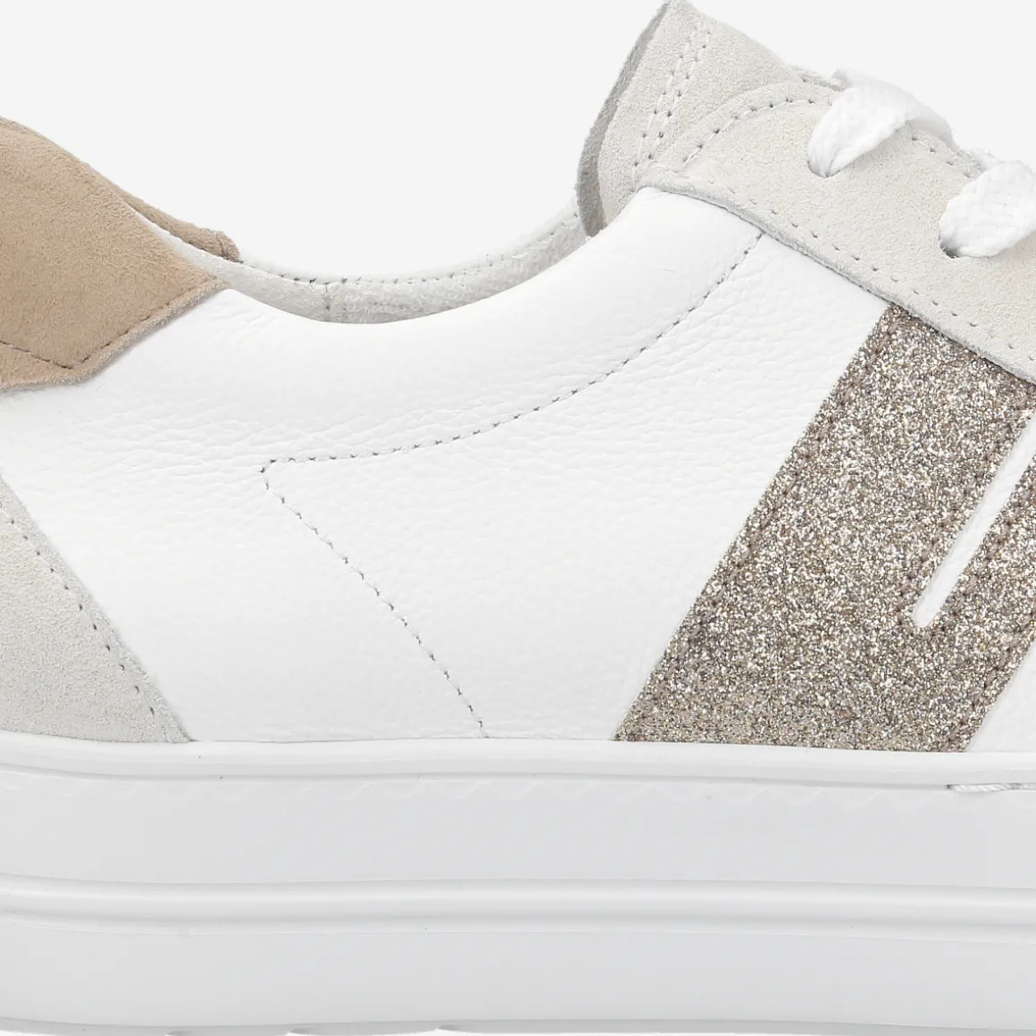 - Platform sole, rivet applications in the heel area, eye-catching glitter application on the side, breathable
