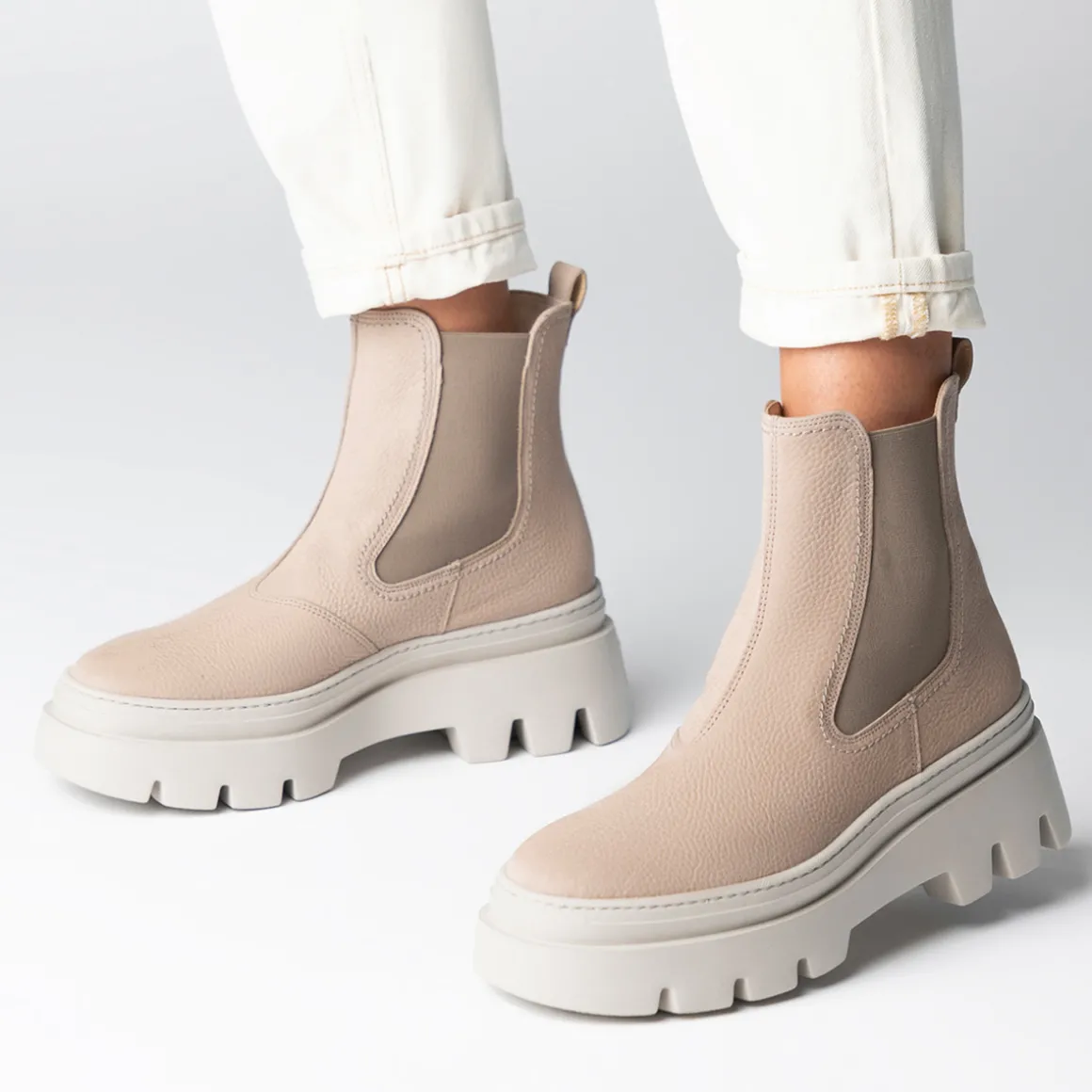 These SUPER SOFT Chelsea boots from Paul Green are among the favorites of modern casual looks. The beige nubuck leather with the elastic inserts on the sides of the shaft present the typical classic sporty chic and ensure convenient entry and exit. The clean lines elevate the pair in style. With the progressive outsole, you will advance to a fashionable trend partner. Discover new styles! Paul Green makes shoes with great passion and mastery, expressed in perfection, quality, style and fit. The result: a unique, uplifting wearing experience! The Paul Green effect.