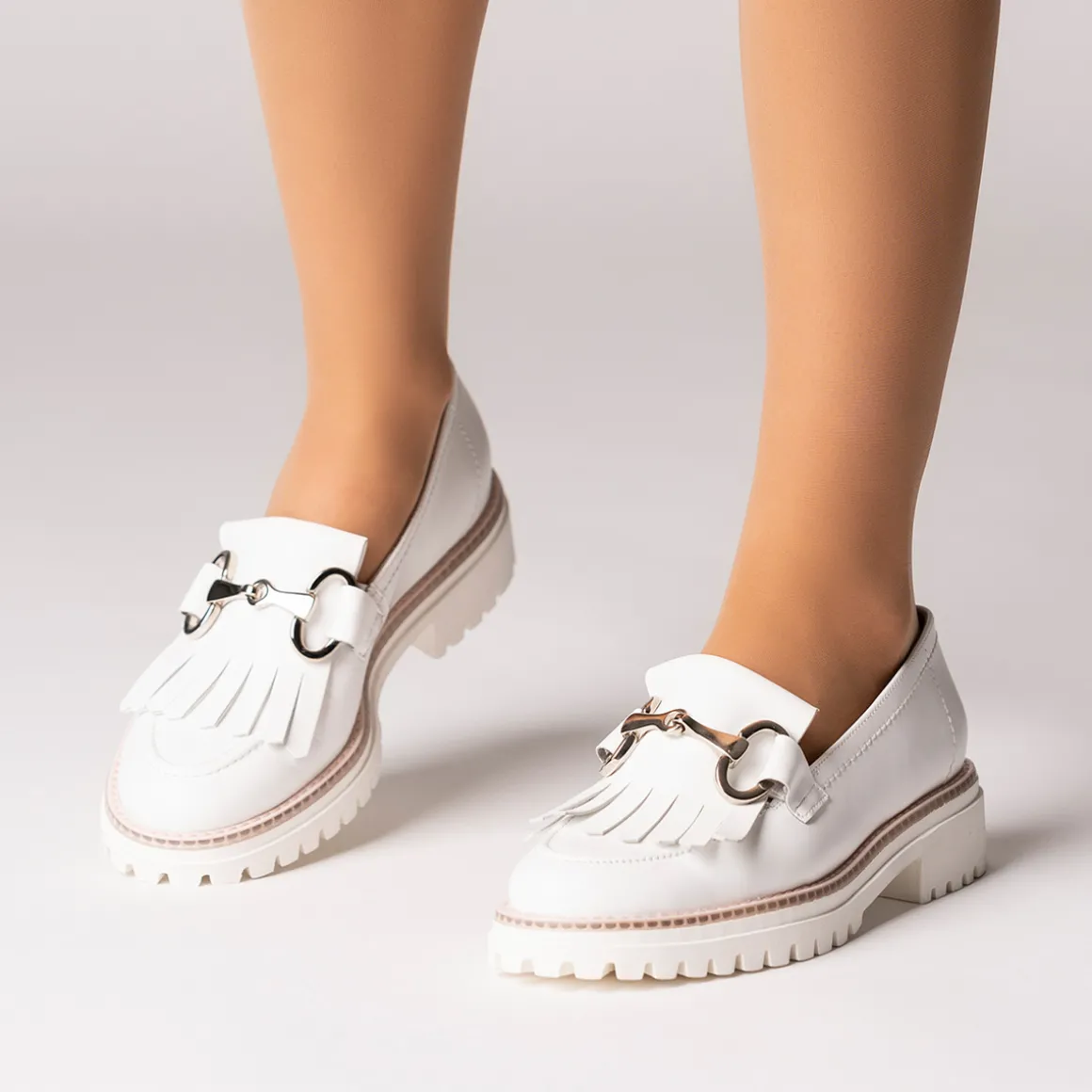 Fashionistas love these SUPER SOFT loafers from Paul Green because they are hip and go with everything. The white smooth leather with fringe part and noble chain at the instep area creates a modern fashion style. Puristic noble look shows the loafer with flexible outsole and transparent frame. The ideal partner for any look! Paul Green makes shoes with great passion and mastery, which is expressed in perfection, quality, style and fit. The result: a unique, uplifting wearing experience! The Paul Green effect.