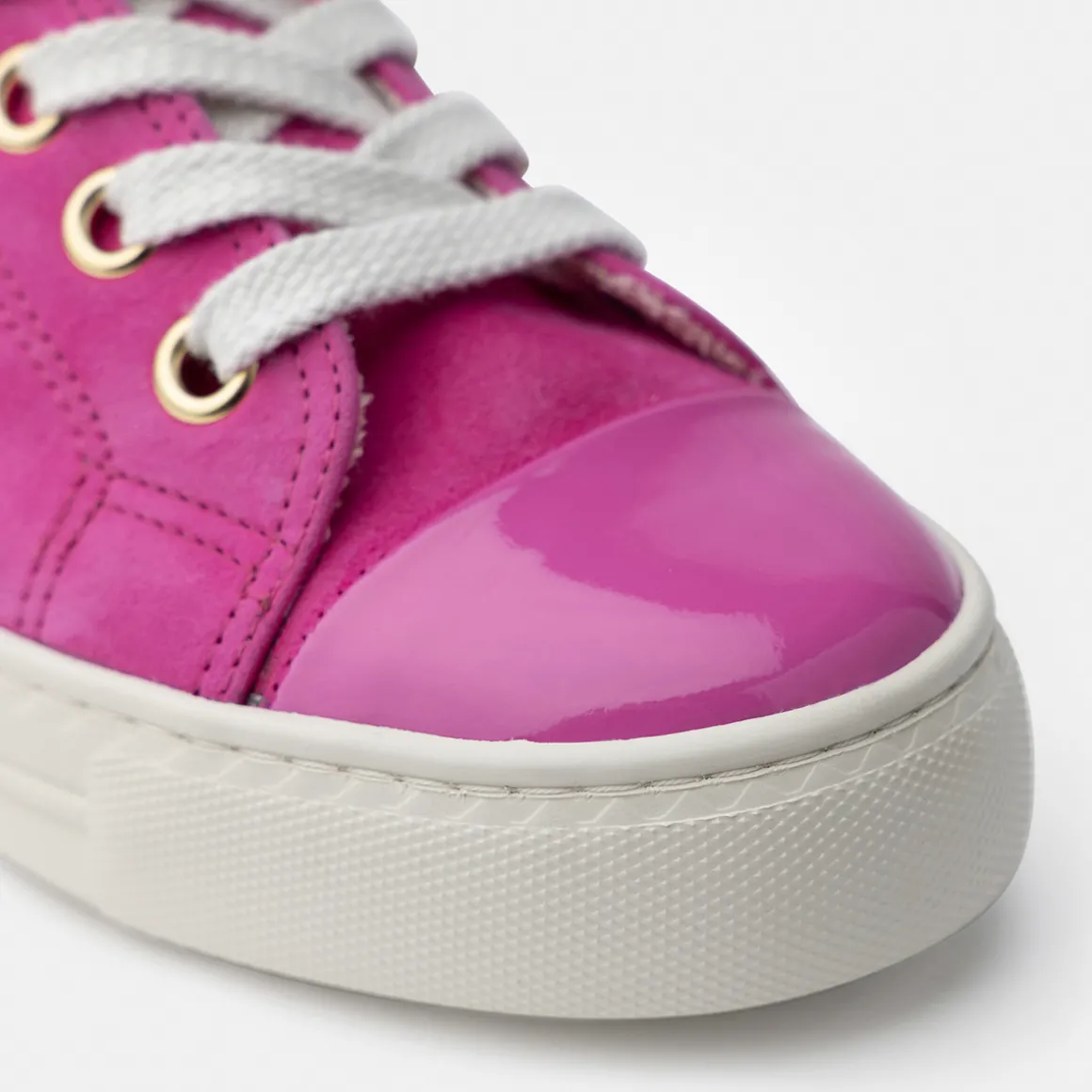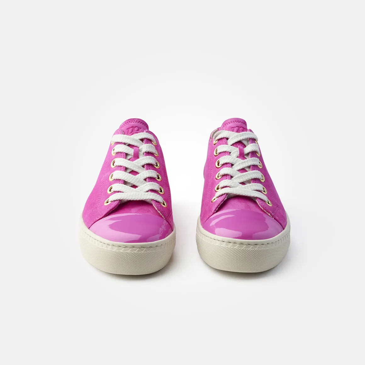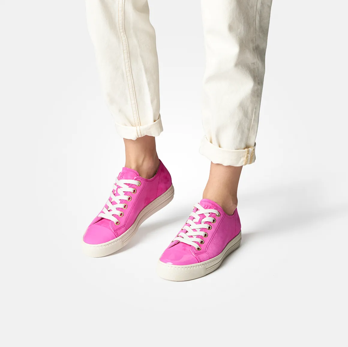 These SUPER SOFT Pauls from Paul Green are the perfect addition to your casual street style. The clean look in supple velvet leather in pink is punctuated by a beautiful patent toe cap and matching eyelets. The soft leather lining with terrycloth makes them comfortable to wear. Thanks to the super soft leather finish, this pair guarantees first-class comfort. Casual and chic on the go – all day long! Each Paul Green shoe is made by hand in up to 160 steps and then checked. This ensures that they meet the high standards of fit and quality.