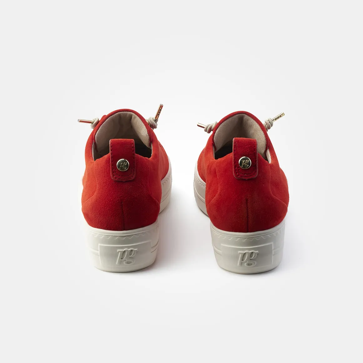 These SUPER SOFT Pauls from Paul Green are perfect for trendy everyday styles. The model impresses with red velvet leather and elegant details. The elasticated laces ensure a relaxed feel. Thanks to the super soft finish, this pair provides extra comfort. The wide outsole impresses with a trendy look. A perfect duo for leisure time or the office! Paul Green makes shoes with great passion, which is expressed in perfection, quality, style and fit. The result: a unique, uplifting feel!
