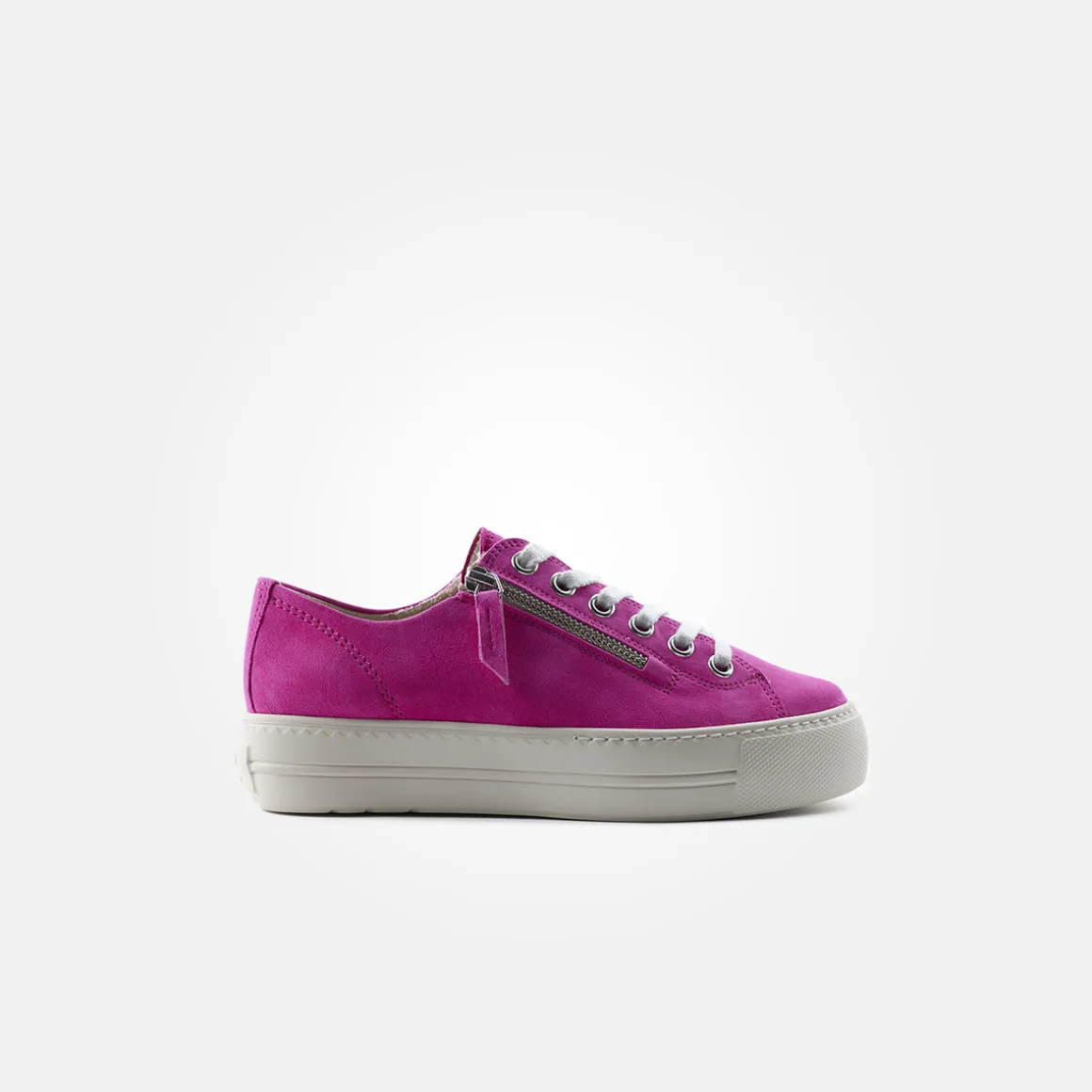 These SUPER SOFT Pauls by Paul Green are a real eye-catcher. The supple velvet leather with an eye-catching pink color gives the shoe a dynamic and modern look and makes it a real statement piece. A zipper at the side makes them easy to put on and take off. The platform sole of the sneaker not only ensures a trendy style, but also a comfortable fit. Whether worn with jeans and a T-shirt or a summer dress, this pair is a real eye-catcher! Paul Green makes shoes with great passion, which is expressed in perfection, quality, style and fit. The result: a unique, uplifting feel!