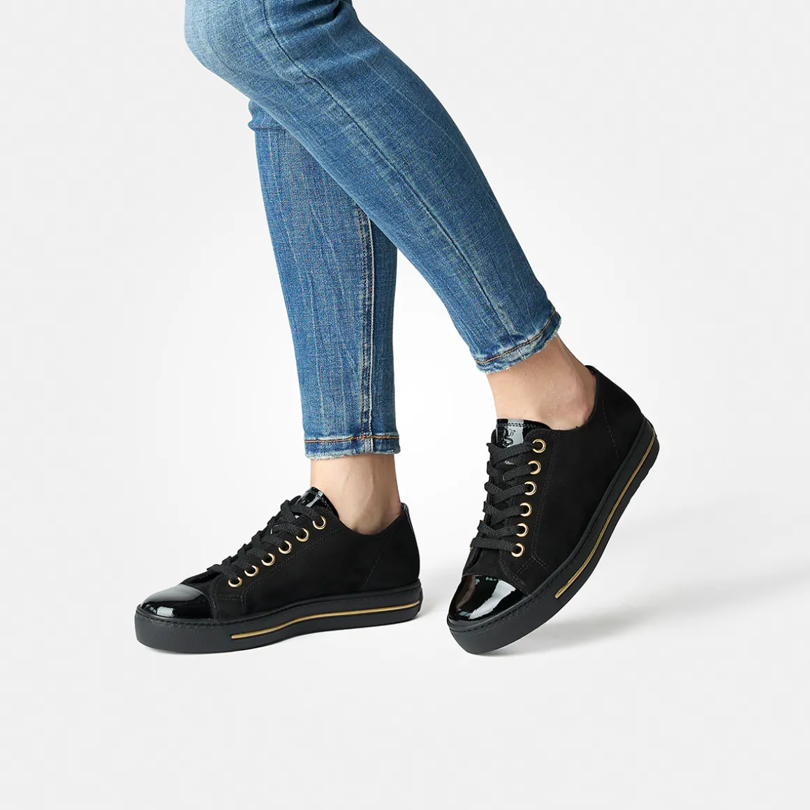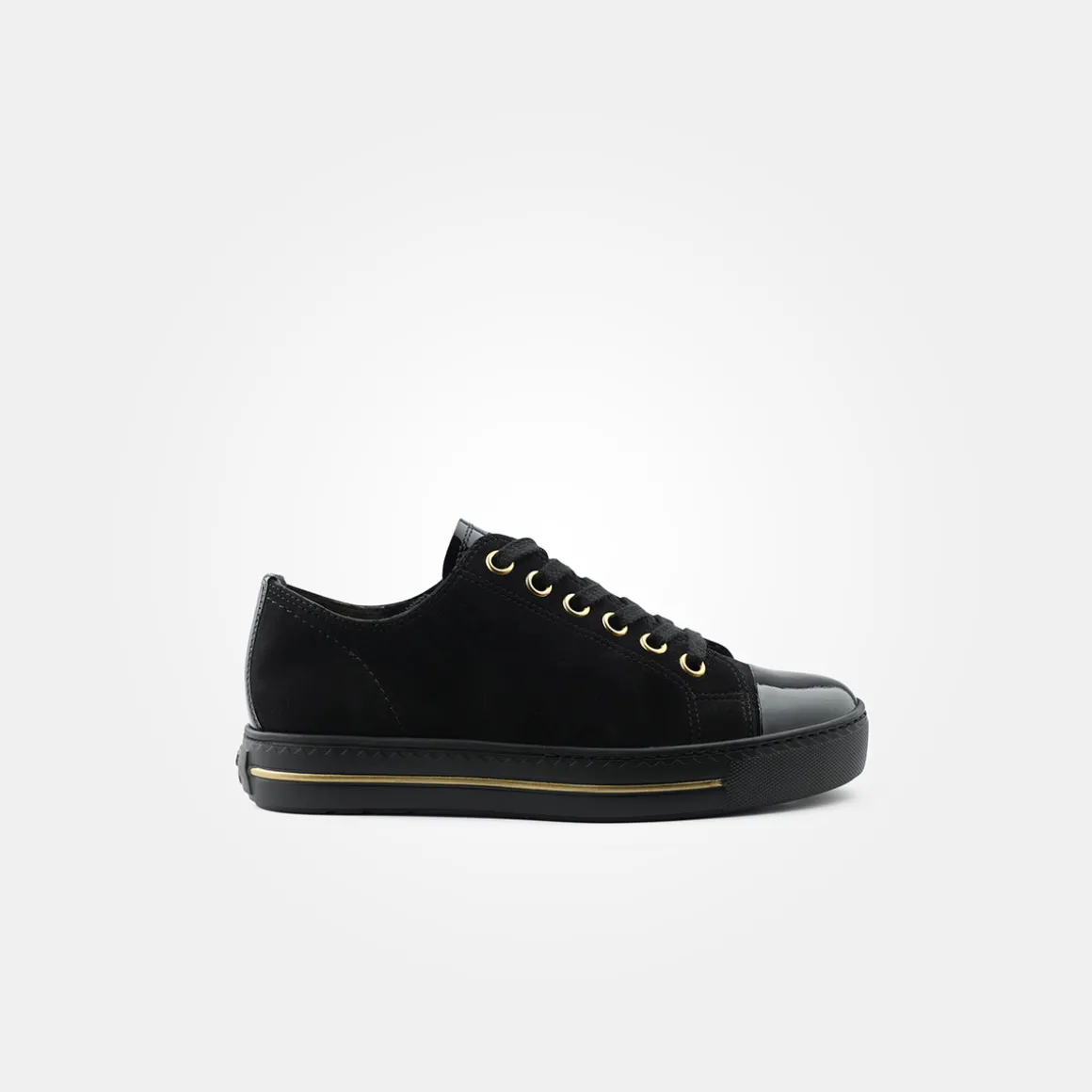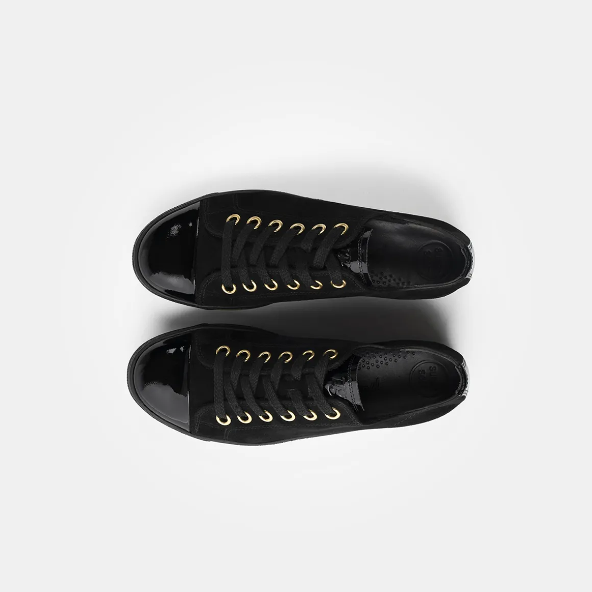 - SuperSoft, supple leather, soft heel cap, lightweight and flexible outsole, soft footbed, decorative stitching, logo embossing, golden element along the sole of the shoe.