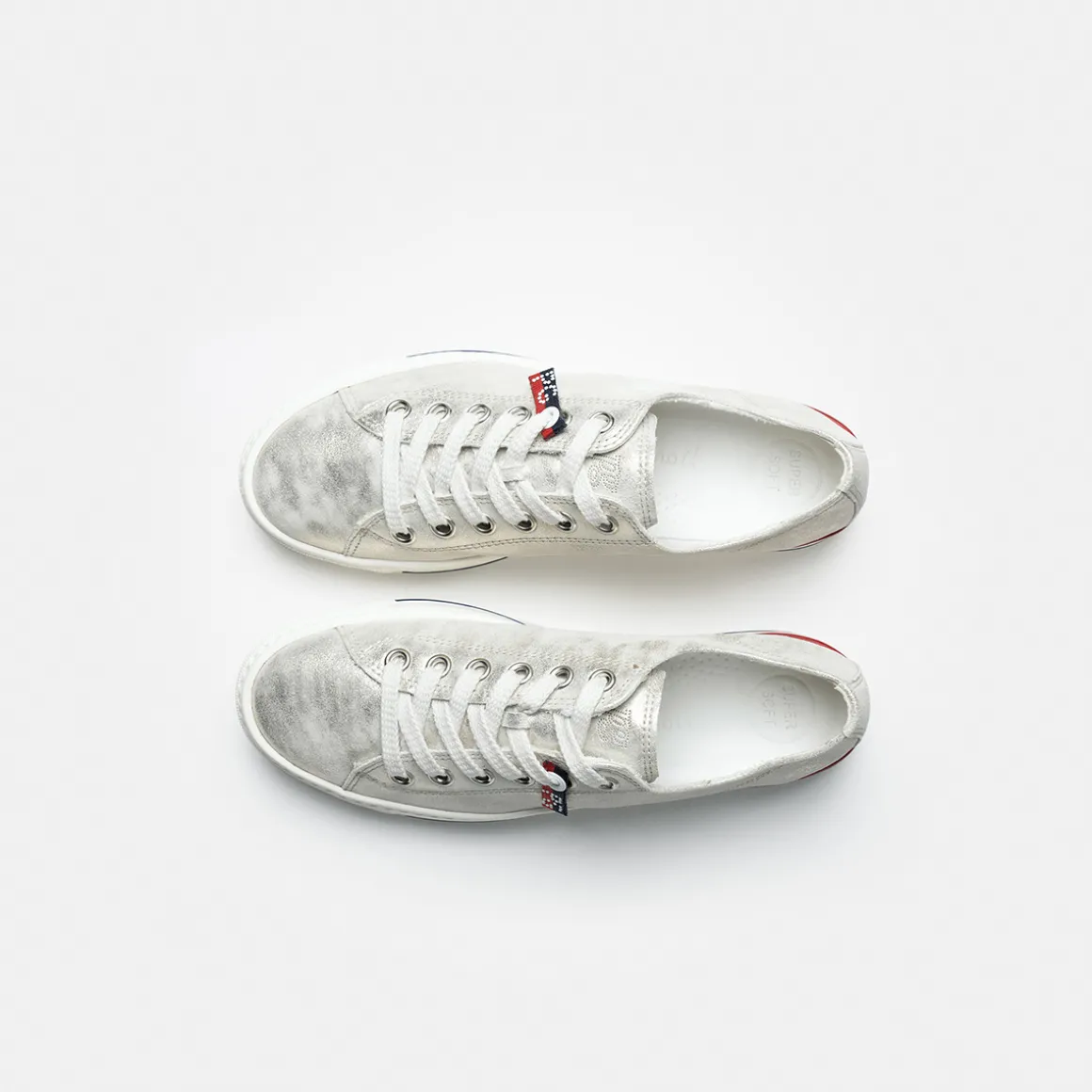 These first-class SUPER SOFT Pauls from Paul Green are an excellent addition to your shoe collection and the epitome of casual style. The model boasts a clean look made from extremely soft, silver metallic leather. The attractive outsole in a trendy striped design also adds a stylish accent. The red and blue grosgrain ribbon on the laces gives the model an eye-catching accent. A super soft heel section hugs the foot comfortably and the soft leather lining with TENCEL™ fibers ensures a pleasant feel. Walk comfortably throughout the day. Definitely the perfect sneaker for your fashionable street styles! Each Paul Green shoe is made by hand in up to 160 steps and then checked. This ensures that they meet the high standards of fit and quality.
