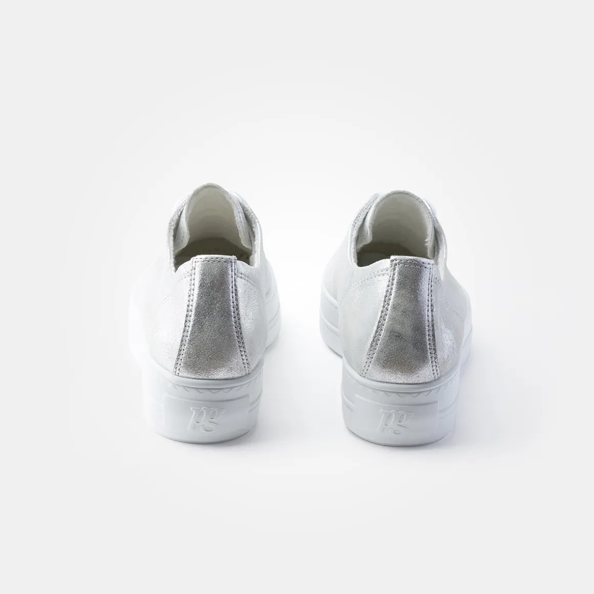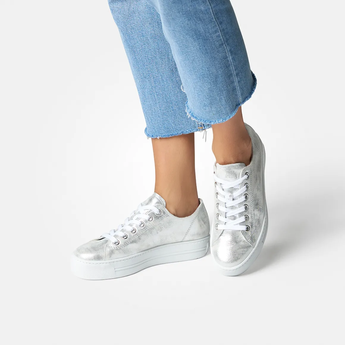 These platform Paul Green trainers are your new SUPER SOFT fashion favorites for chic casual looks. Made from high-quality metallic leather in silver, this pair boasts a minimalist design. These sneakers feature a soft leather lining with fluffy TENCELâ„¢ fibers and an extremely soft heel section for unbeatable comfort. The wide sole rounds off the overall sporty look. Give your outfit creations a fashionable finish! Paul Green makes shoes with great passion, which is expressed in perfection, quality, style and fit. The result: a unique, uplifting feel!