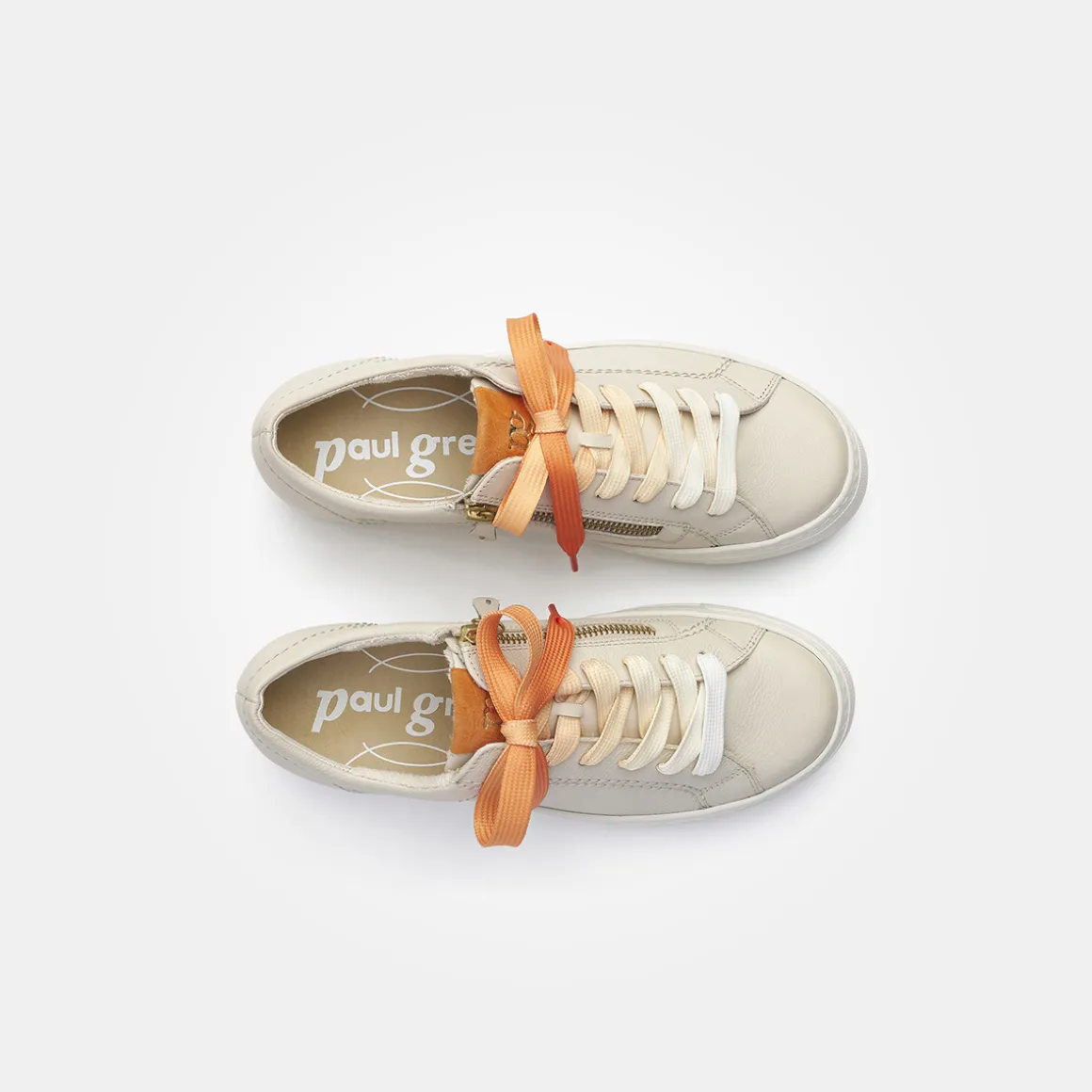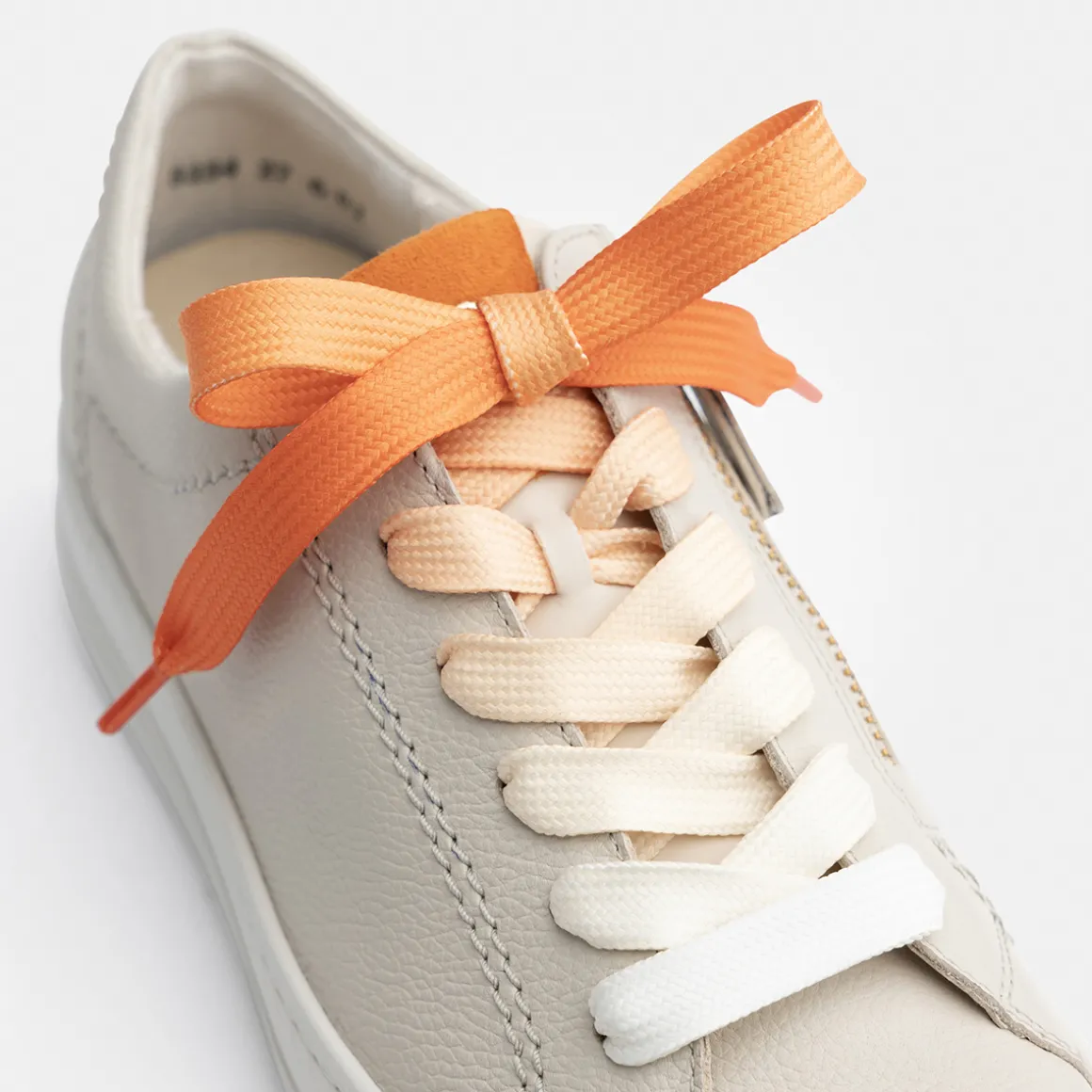 - SuperSoft, supple leather, soft heel cap, light and flexible outsole, soft footbed, relax width, more width, special cut, orthopaedically shaped removable footbed allows the skin to breathe, perforated leather insole in a color matching the model, air channels incorporated in the PU foam, recyclable with a sustainable aspect, zipper, decorative stitching, logo embossing, white-to-orange color gradient on the laces