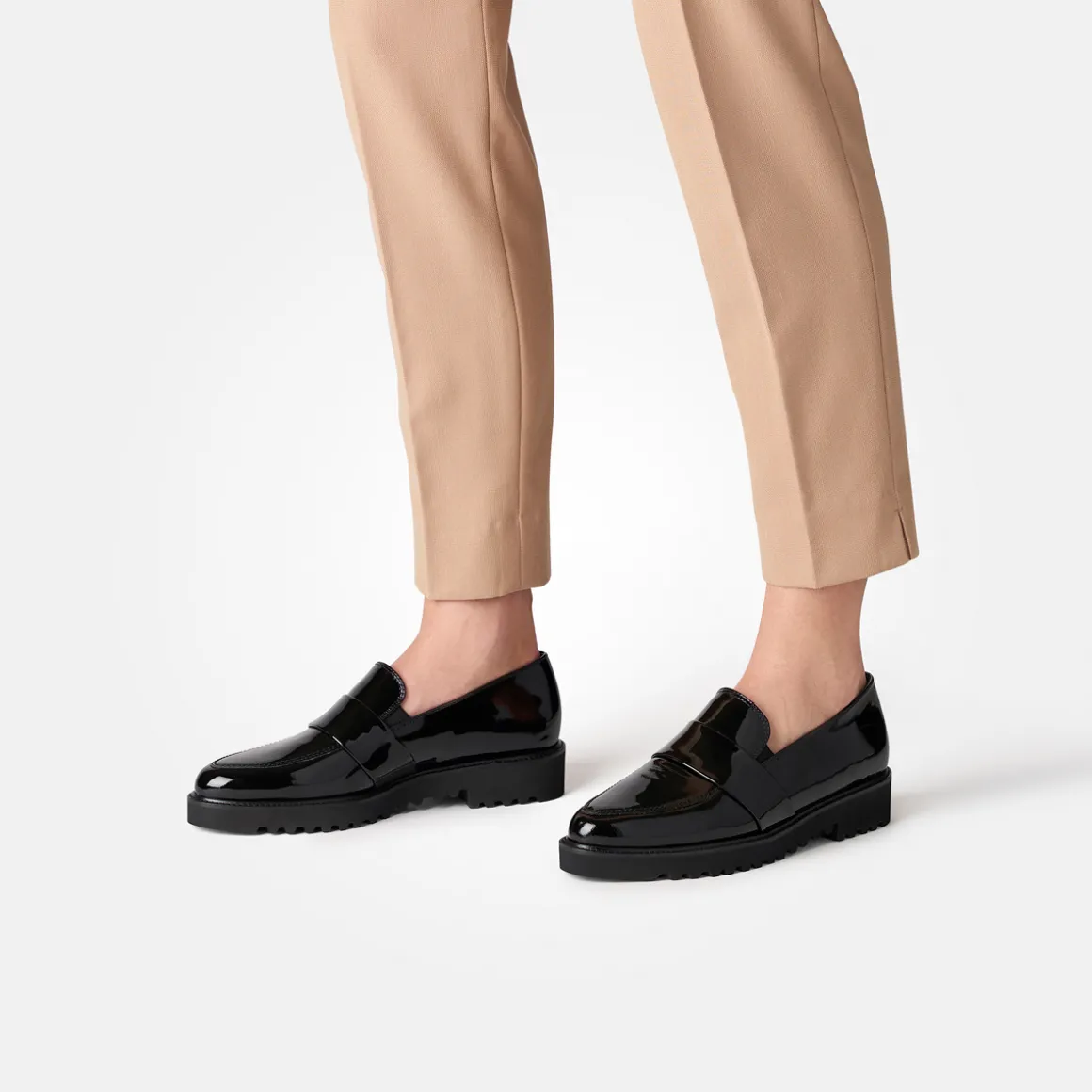 These SUPER SOFT loafers from Paul Green present themselves simply and stylishly. The classic, elegant design of black soft patent leather gives a magical fashion image. Pleasantly flat and particularly light and comfortable to slip on, these moccasins have what it takes to become a favorite piece and can also be combined in a variety of ways. Convince yourself! Paul Green shoes have a DNA of elegance and sportiness. This DNA is in every single shoe and in the entire range.