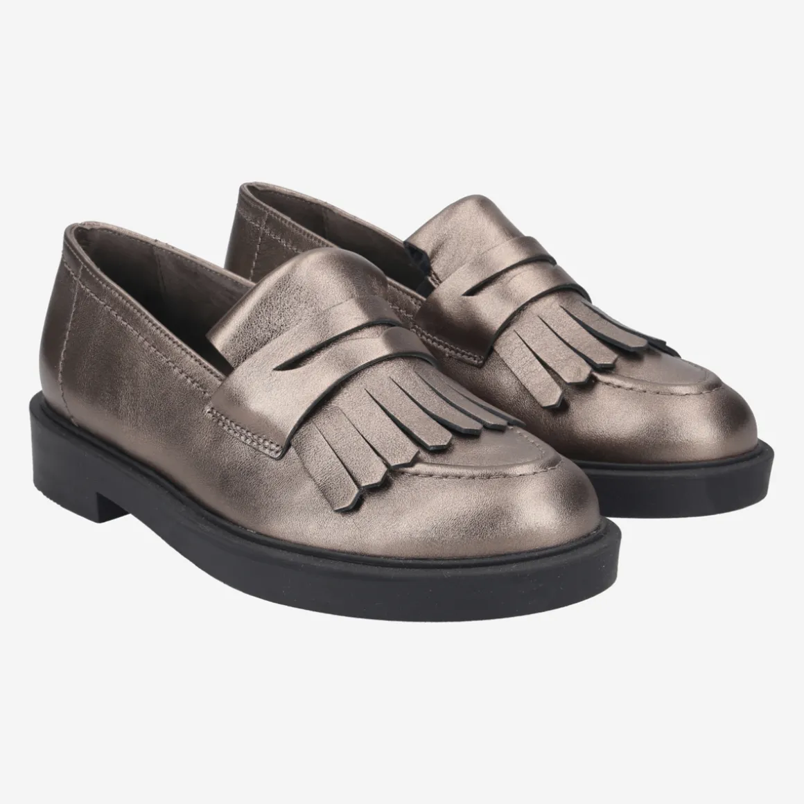 Slipper meets fringes! These SUPER SOFT loafers from Paul Green present themselves in an expressive design. The beautiful metallic leather in bronze is contrasted by chic fringes and thus follows the trend of the season. Due to the super soft processing, the model is extremely comfortable to wear and uncomplicated in handling. The flexible outsole underlines the trendy look and ensures a comfortable appearance. This pair is a real favorite! Paul Green makes shoes with great passion and mastery, which is expressed in perfection, quality, style and fit. The result: a unique, uplifting wearing experience! The Paul Green effect.